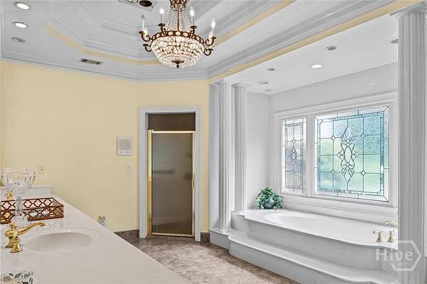 - Attic, Breakfast Area, Built-In Features, Double Vanity, Elevator, Entrance Foyer, Fireplace, Garden Tub/Roman Tub, High Ceilings, Kitchen Island, Main Level Primary, Pantry, Permanent Attic Stairs, Primary Suite, Separate Shower, Sitting Area in Primary, Tray Ceiling(s), Vaulted Ceiling(s), Wet Bar