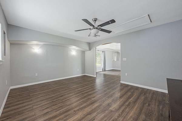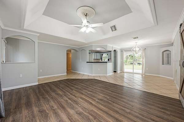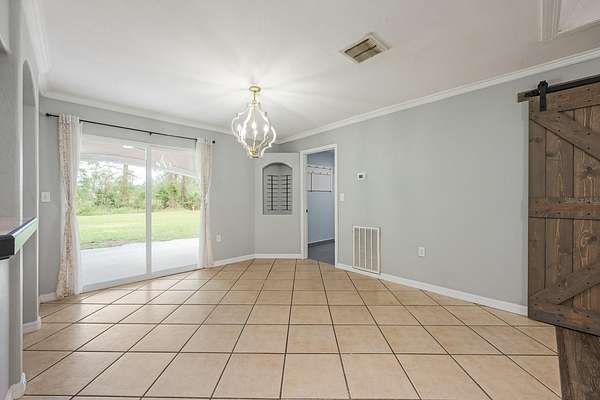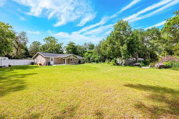 One or more photo(s) has been virtually staged. Ask about a lender provided RATE BUY-DOWN CREDIT on this home!Seller may consider buyer concessions if made in an offer**Set on a sprawling 1.71-ACRE DOUBLE PARCEL in Plantation Estates of DeBary, this 3-bedroom, 2-bath home offers room to breathe, modern updates, and endless potential SURROUNDED BY NATURAL BEAUTY. With tranquil conservation land and a natural water feature stretching behind the property, this is a rare opportunity to enjoy PRIVACY, SPACE, and CONVENIENCE all in one. RECENT UPDATES bring comfort and confidence, including a NEW ROOF (2025), NEW CONCRETE PORCH, and an UPDATED GUEST BATH. Inside, NEWER LAMINATE FLOORING enhances the Living room and Office, while all bedrooms also feature laminate flooring for easy care and a cohesive look. The Living and Dining combination is open and inviting, with a TRAY CEILING and arched cutouts adding a touch of architectural style. SLIDING BARN DOORS reveal a large Office with BUILT-IN SHELVING, a versatile bonus space converted from the garage--perfect for working from home or pursuing hobbies. A graceful curved doorway leads to the Kitchen, complete with SOLID WOOD CABINETRY, tile countertops, and a breakfast bar, ideal for casual meals or morning coffee. The Primary Bedroom offers an EN SUITE BATH, while two additional bedrooms provide plenty of space for family or guests. Step outside to enjoy a covered patio overlooking the EXPANSIVE BACKYARD, where you can unwind, entertain, or take in the surrounding PEACE and PRIVACY. Practical features like an RV HOOKUP, electrical connection for a whole-house generator, and NO HOA make this property as functional as it is inviting. There's truly so much potential for what you can do with the land. Located close to Gemini Springs Park, DeBary Hall Historic Site, and the St. Johns River, OUTDOOR ADVENTURES are always nearby. Easy access to I-4 and US-17/92 makes commuting simple, with Sanford, Lake Mary, Orange City, and Deltona all within minutes--and both DAYTONA BEACH and DOWNTOWN ORLANDO less than an hour away. SPACIOUS, UPDATED, and surrounded by NATURAL BEAUTY, this Plantation Estates home provides a lifestyle of comfort, flexibility, and opportunity. Don't miss your chance to call this Home!