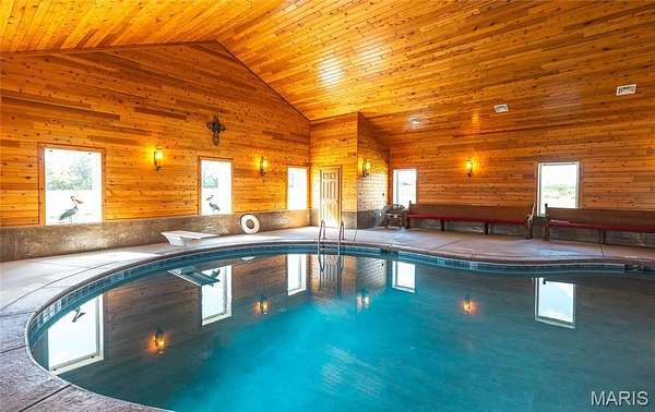 Situated on a picturesque 45+/-acre parcel, this remarkable, 4 bedroom, 3 & a half bath, country estate offers a truly luxurious living experience. This expansive residence provides ample space for both family living & entertaining guests. Large, welcoming living room. Spacious kitchen/dining combo with granite counter tops, center island & pantry. Convenient main floor laundry facilities. Generously sized bedrooms both on the main level & in the lower. Main floor master, 2,000 sq ft indoor pool space with separate HVAC & 3/4 bath. Covered house length front porch, covered stamped concrete patio. 6 in. thick concrete wall construction, fully accessible 36" doorways & level thresholds. Full, finished, lower level with 9 ft ceilings. GeoThermal HVAC, dual electric water heat. Excellent hunting property. Embrace the splendor of rural living in this exceptional property. Call today & see this one for yourself. Also see 23048827 for house and 5 acres.