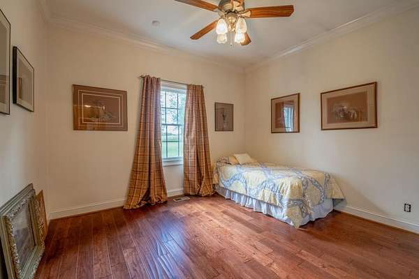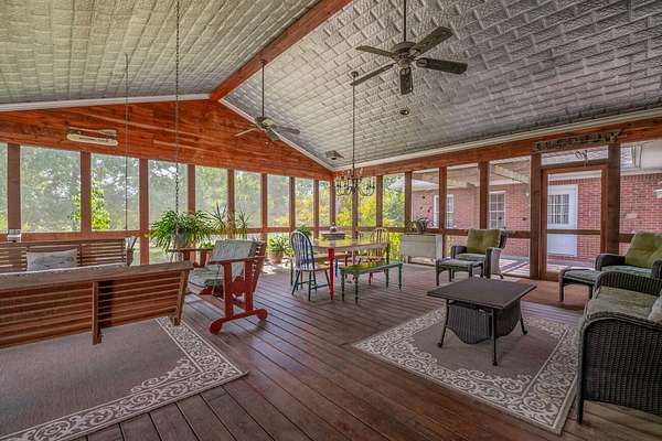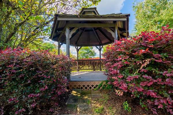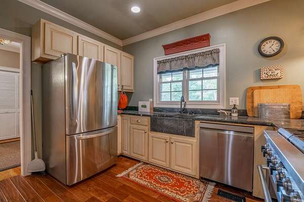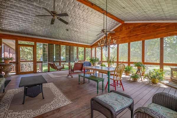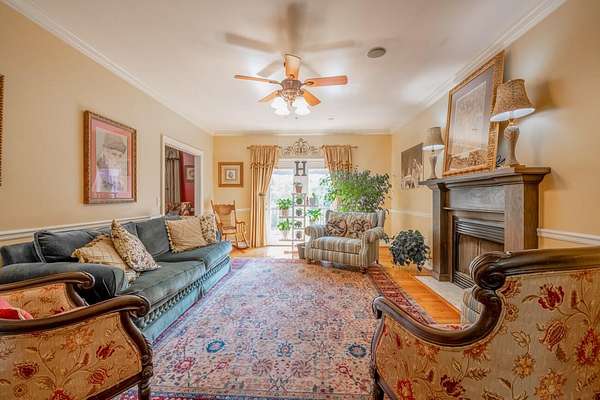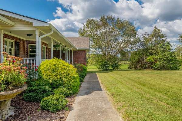 Elevate your lifestyle in this breathtaking one-level, all-brick home, perfectly blending warmth and sophistication. The chef-inspired kitchen features a gas range, granite countertops, and tile flooring, perfect for culinary exploration. Unwind in the cozy living room with fireplace, or entertain in the dining room with its own fireplace and adjacent music room. The serene primary bedroom offers a peaceful retreat with a sitting room/library and en-suite. Three additional bedrooms and a full bath provide ample space for family and friends. Start your day with a refreshing cup of coffee on the expansive covered screened deck, complete with a wood-burning stove. Embrace sustainability with discreetly placed solar panels and battery backups. A charming one-bedroom guest house at the rear of the property offers endless possibilities for hosting loved ones or generating additional income.