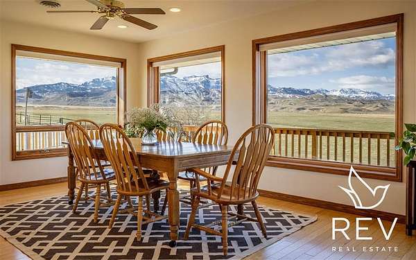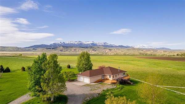 This 194 acre South Fork ranch borders Bureau of Land Management and State public lands. Located about 15 minutes Southwest of historic Cody, Wyoming, this sizeable landholding is extremely rare. The property lies just beyond the base of stunning, rugged Carter Mountain and overlooks the upper South Fork valley, Buffalo Bill Reservoir and surrounding Cedar, Jim and Sheep Mountains. With approximately 137 acres of irrigable land, springs and a pond, this property attracts wildlife and is a hearty environment for cattle and horses. The 3404 sf home has five bedrooms, two and one half baths and is brilliantly designed, taking full advantage of the landscape views on the main level and walk out basement. Two car attached garage, detached hobby shop, tack room, enclosed greenhouse with wood stove, circle drive, landscaping and privacy. The South Fork valley offers blue ribbon fishing on the Shoshone River and trailheads for exploration and hunting. Yellowstone National Park is a 60 mile drive from this property. An incredible opportunity to own one of the most beautiful places in Wyoming.