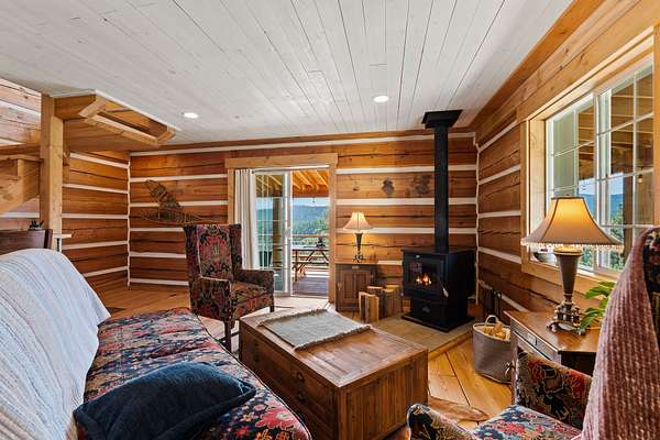 Welcome to the Eureka Summit community where this custom crafted log cabin provides privacy, and sweeping Montana beauty. Perched atop a bluff in the sought-after Summit subdivision, this exceptional log cabin overlooks the stunning Tobacco River Valley and captures breathtaking 360-degree views of the surrounding mountain ranges. Thoughtfully constructed with hand-crafted Western Larch D-logs and traditional dovetail corners, the home reflects both enduring quality and timeless rustic design. Inside, you'll find meticulously custom-milled features throughout, including the flooring, staircase, deck railings, vertical supports, and exposed purlins-each detail contributing to the cabin's warm, authentic character. The heart of the home is complemented by custom-built cabinetry featuring inlaid barn wood, slow-close doors, full-extension drawer slides, and premium hardware. LED lighting throughout enhances both efficiency and ambiance. Step outside onto the expansive wraparound balcony and experience unmatched serenity from your private lookout-an ideal setting for morning coffee or evening sunsets over the valley below. Residents of the Summit enjoy access to a private homeowners' park with a clubhouse and recreation area, perfect for gatherings and community events. The HOA-maintained Summit Trail provides convenient access directly from US Highway 93, ensuring year-round ease of travel. This is more than a home-it's a retreat, a viewpoint, and a place to truly experience Northwest Montana living at its finest. One of the sellers is a MT licensed real estate agent.