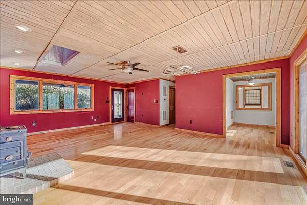 STUNNING RIVER FRONT RETREAT! This contemporary home fronting the Cacapon River features gorgeous hardwood floors, vaulted ceilings, skylights, sliding glass doors, and large windows, just to name a few of its attributes. The spacious living room features a wood burning stove and one of the three accesses to the large back deck where you can take in views of the Cacapon River; you can also access the screened in porch, a perfect place to have an evening meal or enjoy a cup of coffee in the morning. Just off the living room you will find a nook that is flooded with natural light, a perfect place to curl up with a book or just look out to the river. The kitchen has tons of storage to include a large pantry. Off of the kitchen you will find the large laundry room and beyond the laundry room is the mudroom from which you can access the two-car garage. Down the hall from the living room you will find a full bath, two bedrooms, and a den with another sliding glass door access to the large back deck. At the end of the hall is the spacious primary suite complete with hard wood floors, vaulted ceilings, sliding glass doors leading to the back deck, large windows, a separate room that could be an office or maybe even a nursery depending on your needs, a walk-in closet as well as a linen closet, and an ensuite bathroom complete with a shower and jetted soaking tub. Above the garage is a bonus space perfect for guest; this space includes a full bath and covered porch/balcony with views of the Cacapon River. With a pet washing station in the garage and a fenced in area of the backyard that can be accessed from the mudroom off the garage, this river front retreat is move in ready for your family of both the two- and four-legged nature. Whether you are looking for a full-time residence or an escape from everyday life, this home truly has it all!