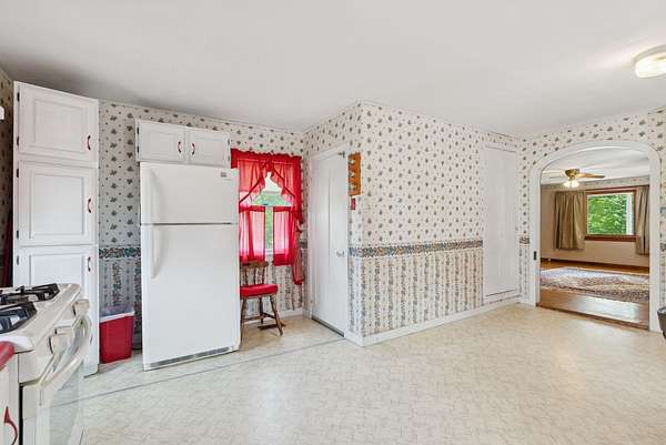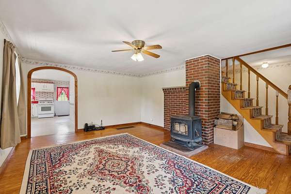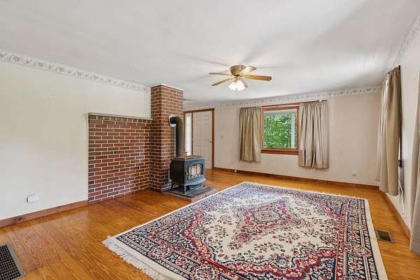 Step back in time with this charming 1800's farmhouse, nestled on over 5 acres of picturesque land featuring large open fields, a small pond, and a detached two-car garage. The property offers a peaceful country setting with plenty of room for gardens, animals, or simply enjoying the outdoors. A large wrap-around farmer's porch welcomes you inside, where you'll find a bright kitchen and a cozy living room with a woodstove, perfect for gathering on cool evenings. The first floor also includes a bedroom and a convenient laundry room, adding flexibility and function to the layout. Upstairs, there are three additional bedrooms plus a bonus family room, providing ample space for everyone. With its classic character, beautiful land, and versatile living spaces, this property offers a wonderful opportunity to enjoy the charm of farmhouse living in a serene rural setting.