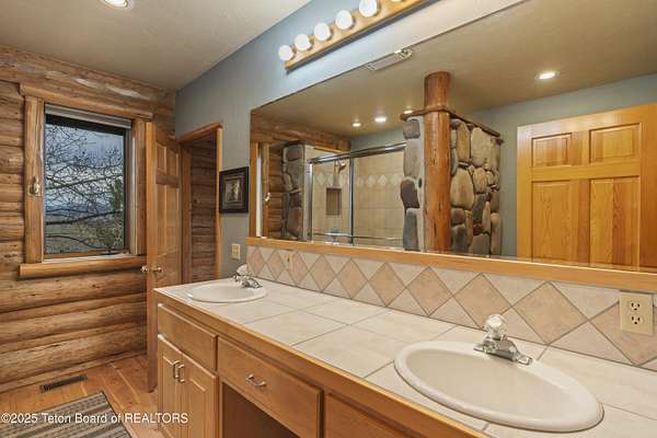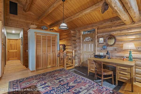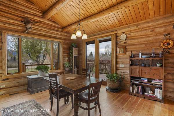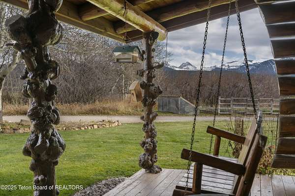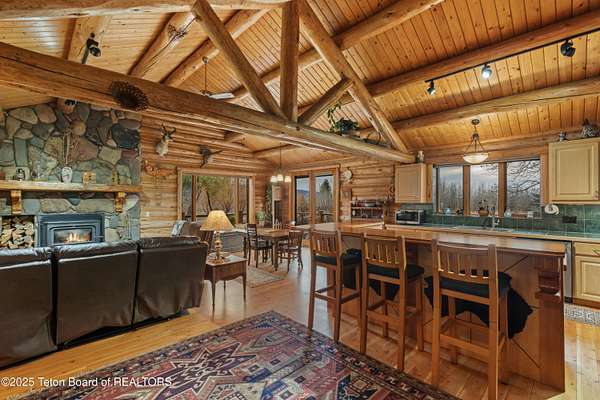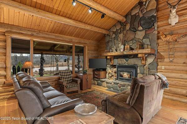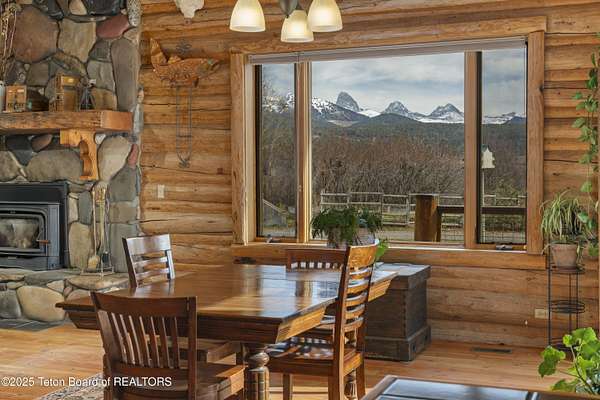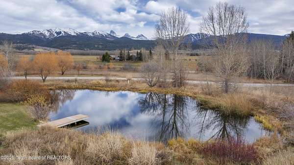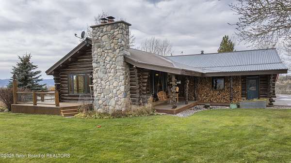 Experience true mountain living in this stunning hand-peeled log home nestled on approximately 5 beautifully landscaped acres with direct views of the Grand Teton Mountains. Built by the owner with exceptional craftsmanship and attention to detail, this 3,000sf residence combines authentic rustic charm with modern comfort. The home features 3 bedrooms, 3 bathrooms, and an inviting open floor plan perfect for entertaining or a quiet retreat. The great room centers around a magnificent river rock fireplace, crafted from real stones hand-picked and placed by the owner. Throughout the interior, custom touches abound from burl wood overlays on the kitchen bar counter to knotty pine posts along the railings and front porch. Windows frame the Tetons and fills the home with natural light. The lower level features a large family room (including a pool table!) with a private walk-out basement that opens directly to the hot tub area which is surrounded by natural rock walls and seasonal gardens, creating the feeling of a secluded mountain grotto. It's your own private retreat after a day of adventure. Outside, enjoy a beautiful pond with a dock, mature landscaping, and a full sprinkler system. The 2-car garage provides ample storage for vehicles and gear. Don't forget, horses are welcome! Ideally located just minutes from Grand Targhee Resort and approximately 1 hour to Jackson Hole. The property location is equal distance to either the Idaho Falls or Jackson Hole airports. Both Yellowstone and Grand Teton National Parks are also nearby. This remarkable property offers the best of Idaho mountain living, craftsmanship, comfort, and natural beauty in perfect harmony.