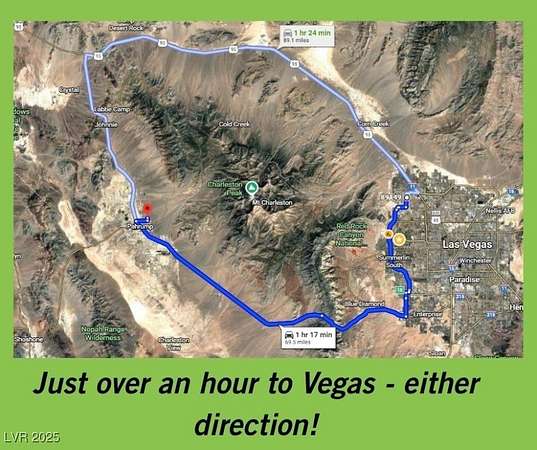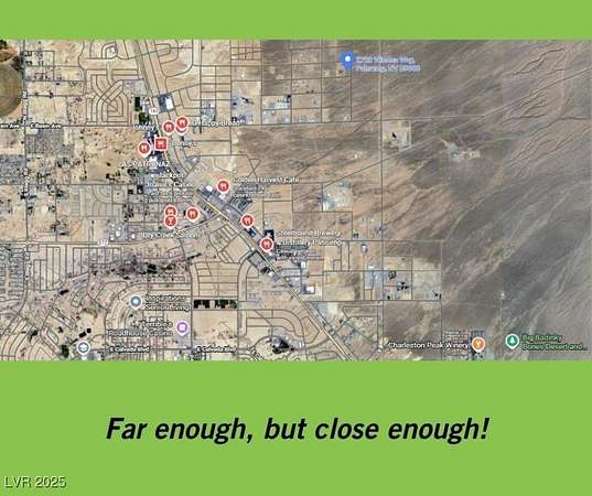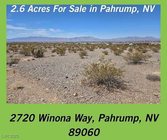 Est $700/moWOW! These views are amazing! Don't miss this incredible opportunity to own 2.6 acres of vacant land on the desirable east side of Pahrump, offering sweeping mountain and valley views from its elevated location near BLM land--perfect for those seeking space, privacy, and outdoor adventure. Zoned for a private well and septic, with power at the corner of the lot, this property is ready for your dream home, horses, or desert toys. With no HOA and no flood insurance required, it's an ideal setting for anyone looking to build in a quiet, scenic area while still being just a short drive from town amenities.
