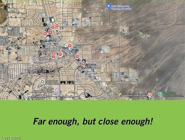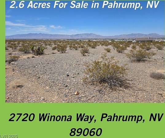 Est $692/moWOW! These views are amazing! Don't miss this incredible opportunity to own 2.6 acres of vacant land on the desirable east side of Pahrump, offering sweeping mountain and valley views from its elevated location near BLM land--perfect for those seeking space, privacy, and outdoor adventure. Zoned for a private well and septic, with power at the corner of the lot, this property is ready for your dream home, horses, or desert toys. With no HOA and no flood insurance required, it's an ideal setting for anyone looking to build in a quiet, scenic area while still being just a short drive from town amenities.