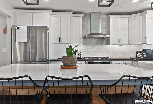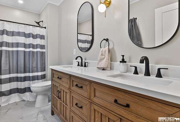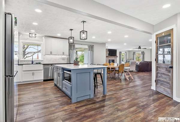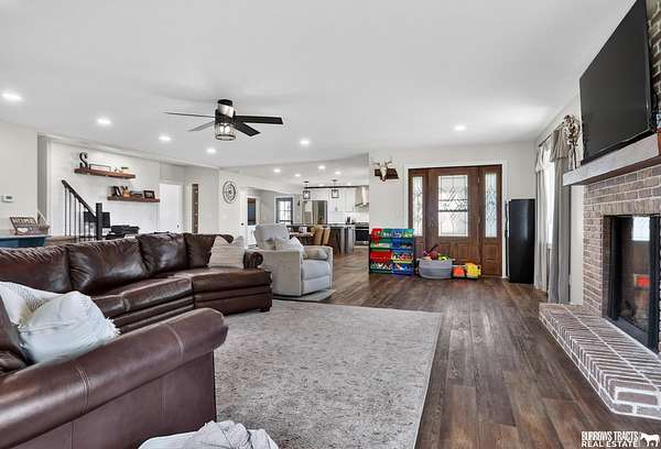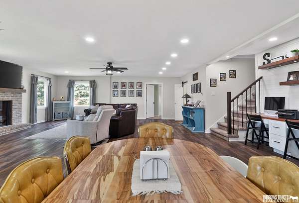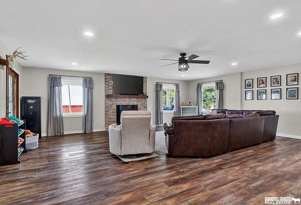 The ultimate retreat for horse lovers and acreage enthusiasts! Situated on 12 established acres, this extensively updated 1.5-story home blends country charm with modern comfort. Recent improvements include a finished basement, stunning new master suite addition, fully renovated main floor including kitchen, fresh second-level paint, and mini-split systems throughout. Offering 5 bedrooms, the home features an open kitchen flowing into a spacious living room with gas fireplace, plus convenient main-floor laundry. Enjoy the inviting wrap-around front porch and peaceful views. The property is well-equipped with a horse barn featuring multiple stalls and tack room, a 50x20 shop, corn crib with lean-to, several additional outbuildings, and corrals perfect for horses, livestock, or storage. There is also a stocked pond that has been excavated to really check all the boxes!