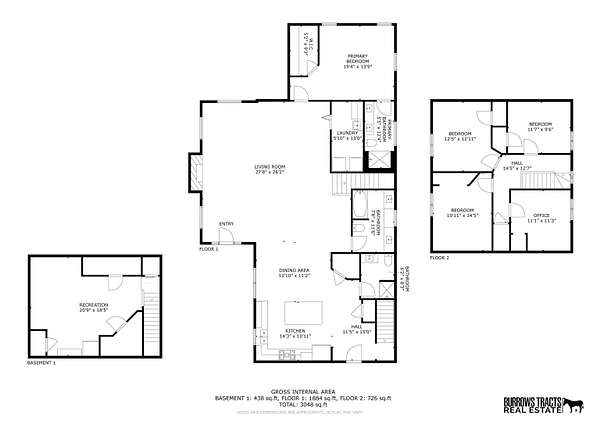 - Basement, Bathroom x 3, Bedroom x 5, Dining Room, Kitchen, Laundry, Living Room