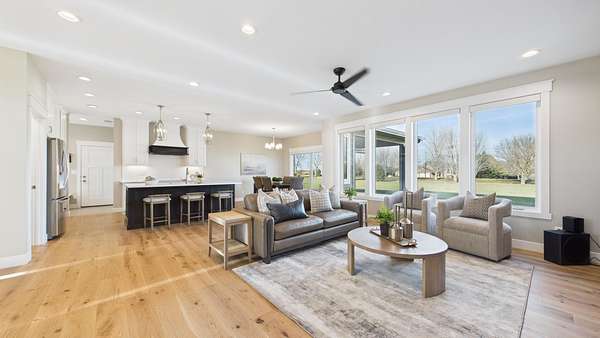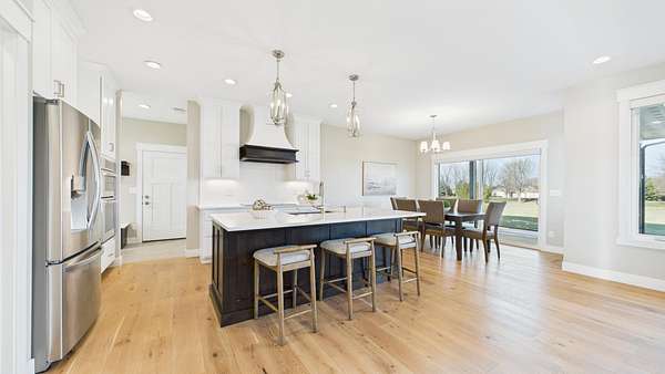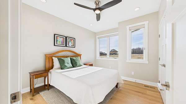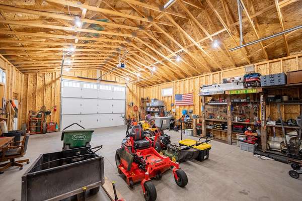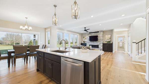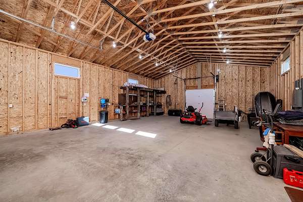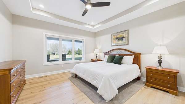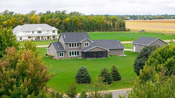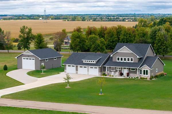 Spectacular home is located on two acres, just north of Lake Alvin, with a short drive to city conveniences; only 7 minutes to Harrisburg and 15 minutes to Sioux Falls. Ideal for anyone, including empty-nesters and families, who love serenity and beauty of the country. This 3-year-old home is in perfect condition, and better than new, with 5 bedrooms (3 on main), 3 full baths, and 3,139 square feet finished. A 28'x13' screened patio offers another summer living area with evening views of sunsets and early-morning sunrises in comfort. There is an oversized 3-car heated garage plus a 30x40 shop that accommodates cars, RV, big toys, workshop, winter playroom, and lots of storage. Some features include zero-step-entry, open concept living, modern design, and much more. Easy-working kitchen with snack-island and walk-in pantry, back foyer with lockers-closets, and a separate laundry room, all with access to the garage. Gracious front foyer opens to spacious living room with a natural-gas fireplace and floor-to-ceiling windows. Main level owner's suite is complete with a walk-in closet and private bath with double sink vanity and walk-in tile shower. Upper level family room is perfect for expanded entertaining space, and has beautiful views of the backyard.