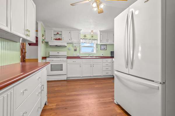 Welcome to this one of a kind...tucked back approximately 600 feet off the road, this 2-bedroom, 2-bath manufactured home on 11.6 acres offers privacy, space, and a great setup for anyone who enjoys the outdoors. Built with 6-inch walls and heavily insulated for efficiency, the home also features a spacious 20x24 addition completed in 2017. Inside you'll find updated kitchen cabinets and countertops (2017), newer appliances, majority updated windows, newer flooring, and a tankless water heater. Heating options include a wood burner or propane. Enjoy the peaceful setting from the covered 8x24 back porch or relax on the covered front porch overlooking the property. The outbuildings make this property stand out. A 30x60 five-bay garage provides ample storage, along with a 16x16 shed. There is also a 40x45 pole barn with concrete floors that is insulated and heated, complete with a sewing/work room. The majority of the land is wooded, creating an ideal habitat for wildlife and excellent deer hunting opportunities. Trails throughout the woods and frequent deer sightings make this a perfect setup for hunters or anyone wanting secluded country property. A large 25x50 garden area surrounded by electric fencing is already in place for those who enjoy gardening. Also, there is potential for logging opportunities for extra income. A rare opportunity to own a private, mostly wooded property loaded with wildlife and multiple outbuildings for hobbies, storage, or work. Other options $110,000 for the neighboring vacant 11.66 acres, 40x60 barn OR $349,999 for the home, 23 acres and 5 bay garage/40x45 heated pole barn, 40x60 barn, and saw mill shed. Call for more questions. Car lift, and vacuum system in wood shop are not included. Call today for your own viewing! This company makes no warranty or representations about the contents of this data. It is the responsibility of the parties looking at the property to satisfy themselves as to the accuracy of this information. Taxes were obtained from the local assessor and the taxes could change for the buyer after a closed transaction.