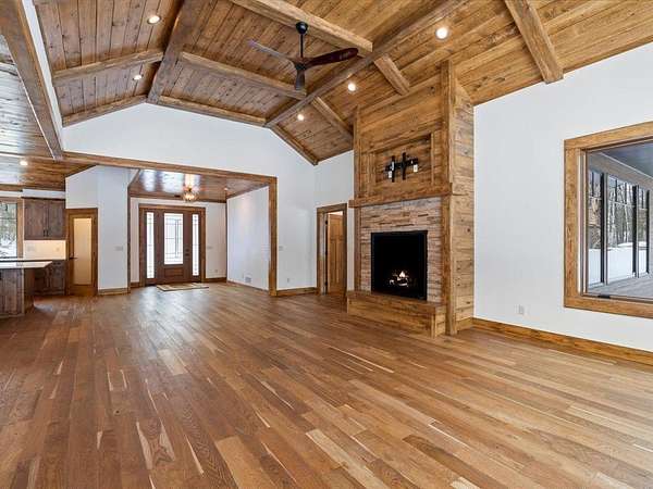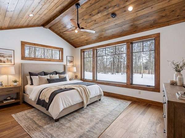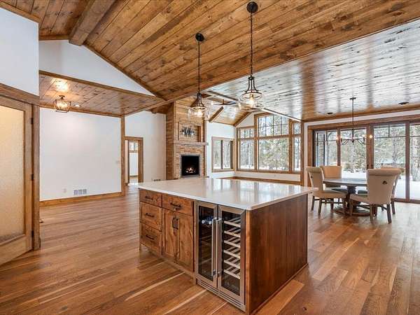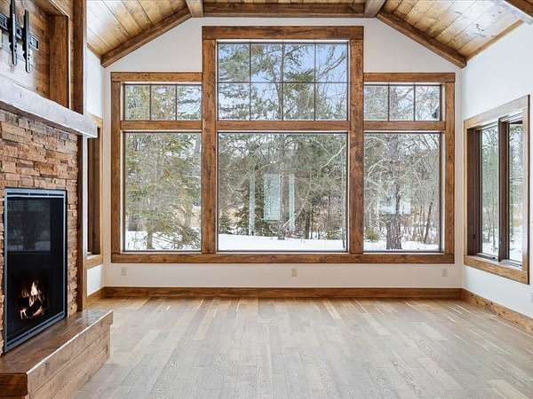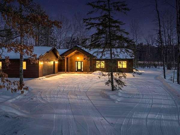 New custom construction with attractive styling and so much to appreciate. The entire arrangement is thoughtful and coalesces the indoor and outdoor spaces to perfection! Built with convenience in mind as a true one-level design with zero steps in or out. Spacious at approximately 2400 finished sq ft with 3 bedrooms and 3 baths. It features an amazing display of Pella windows, custom hickory cabinetry (by Eischens), quartz surfaces, Bosch appliances, wine cooler, Electrolux washer/dryer, hardwood/tile flooring, tile showers, distinctive vaults, oversized attached/heated garage and so much more! Comfort guaranteed with 4 heat sources including in-floor, forced air, heat pump and a fireplace. Fiber optic internet already connected and ready for use. The covered front porch, rear patio and apron are all finished in decorative stamped concrete. The setting is private from neighbors and truly defines the northern experience. Sits on 5 acres with a view of Mantrap River and all of the nature that flourishes with it. No dirt to travel as Island View Drive is a blacktop road. Be sure to check out the video and interactive floorplan for additional details.