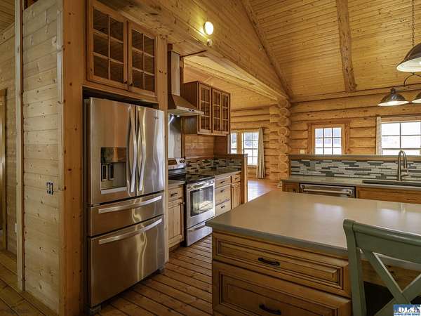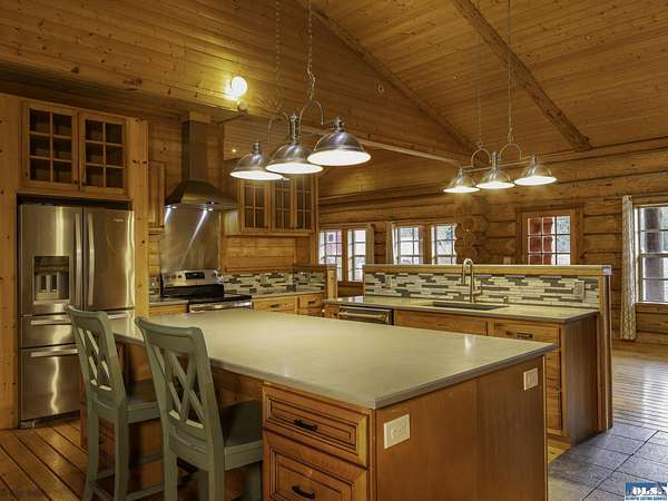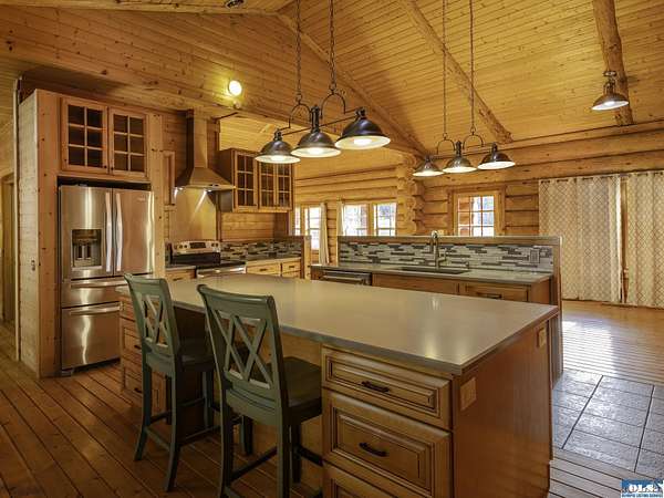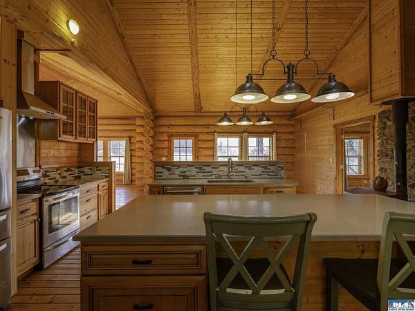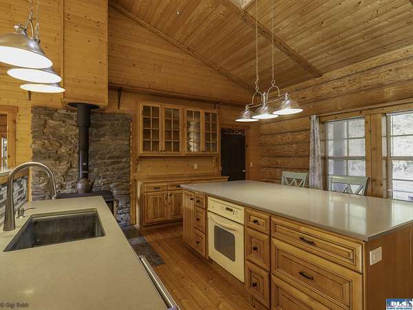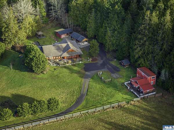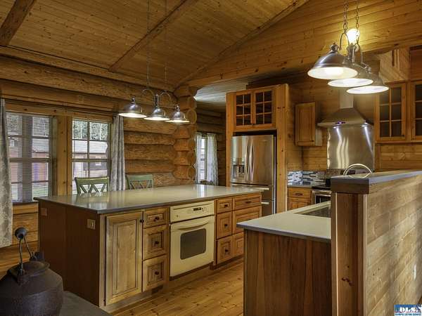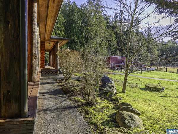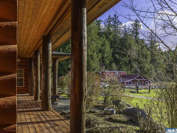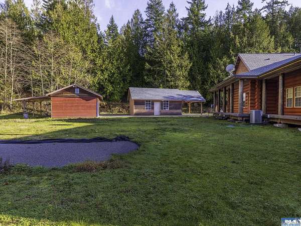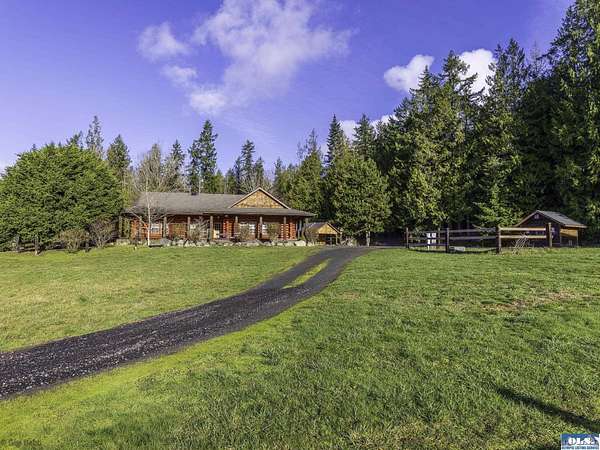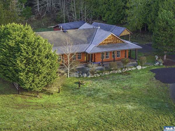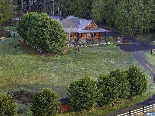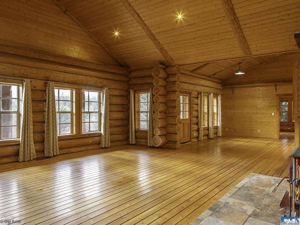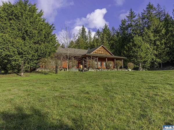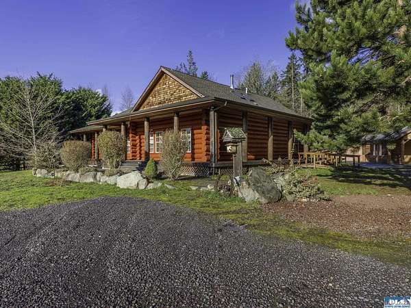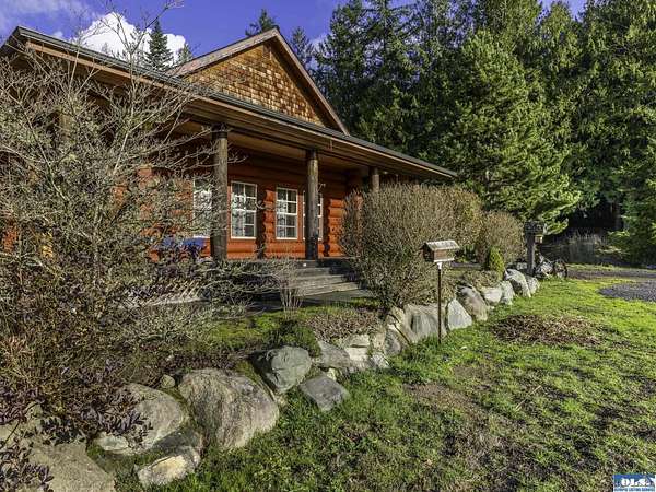 A one of a kind legacy log home for the ages. Built by a local pioneer descendant by hand with massive hand hewn logs. Very energy efficient values not only from the massive logs but also from a hi tech sub floor insulation. Modern Nest climate control system as well as a featured fireplace with insert. Also wood burning stove in the modern granite kitchen. Soaring ceilings throughout. Heavy covered decks for a massive expanse of all weather enjoyment. Enjoy the vista's of the local protected valley - and looming mountains above. Across the highway from the popular Discovery Trail for local or long range protected biking or walking. About a klick to the popular local casino with all that it offers - dining, entertainment etc. if you or your guests are so inclined. Two seperate garages with shop areas and storage. Seperate storage building. A large non permitted 2 story bunk house that previously served as an ADU for family members exists.