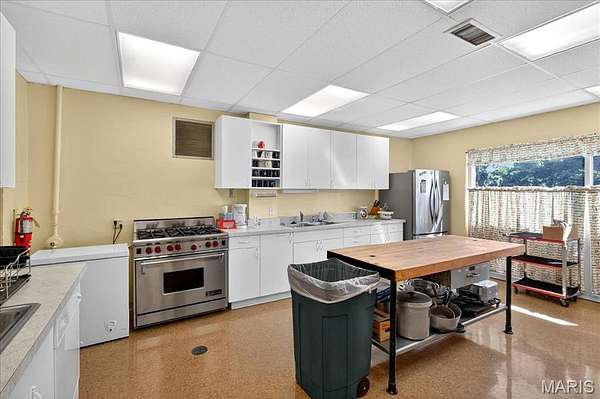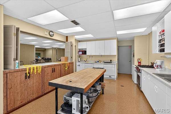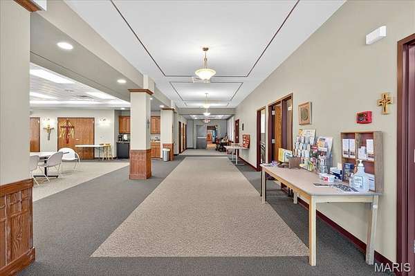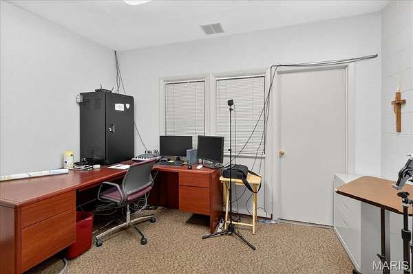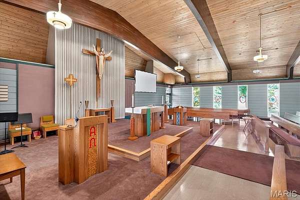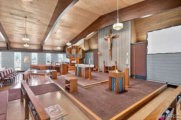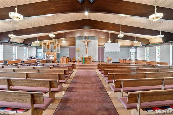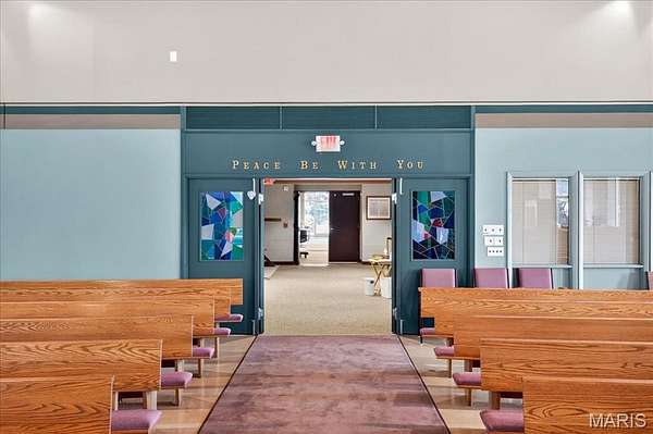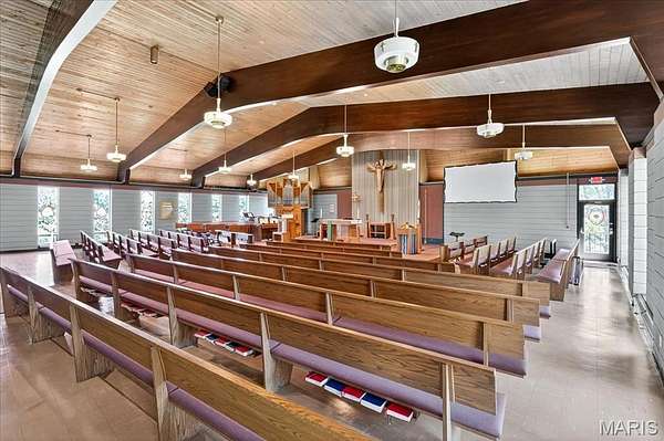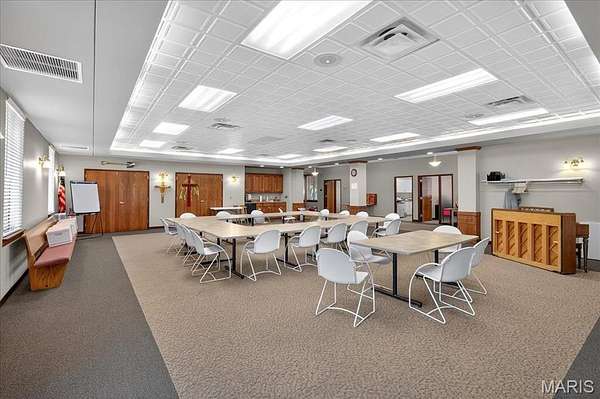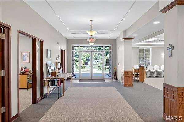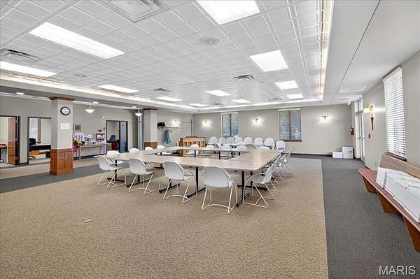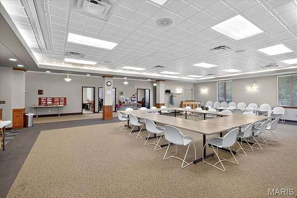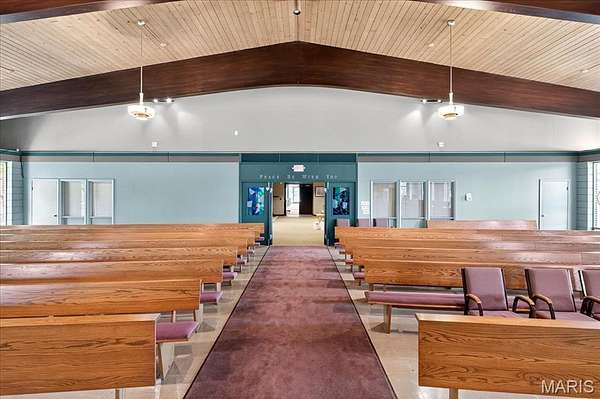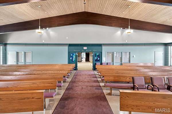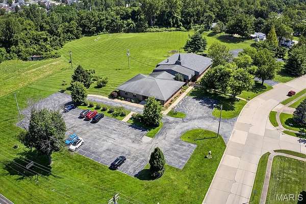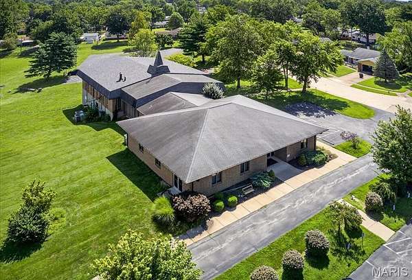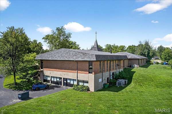 A rare opportunity to own a landmark property in Florissant. Welcome to the Lutheran Church of the Living Christ at 2725 Concord Drive--a sprawling, well-maintained campus situated on 6.9 acres just off New Halls Ferry Rd. Originally built in the 1960s with a thoughtfully designed addition in 2010, this versatile and functional facility is ideal for a church, nonprofit, school, or community organization. The sanctuary features soaring ceilings, beautifully preserved woodwork, and vibrant stained glass, with pew seating for 150+ and potential to expand capacity with chairs. A dedicated A/V room offers flexibility for sound and media. The main level includes several private offices, a large conference room, a copy/production area, ADA-compliant restrooms, and multiple entrances. The lower level impresses with a full commercial kitchen featuring a Wolf range, commercial dishwasher, and refrigerator, plus wide-open, partitionable rooms perfect for classrooms, events, childcare, or outreach programs. Additional highlights include a fellowship hall, updated mechanical systems, and thoughtful storage throughout. Water fountains and built-in amenities on both floors add to the building's ease of use. Surrounded by ample parking and green space, the property is as accessible as it is welcoming. Lovingly cared for and move-in ready, this is a turnkey opportunity. Most furnishings and equipment are negotiable with the sale.