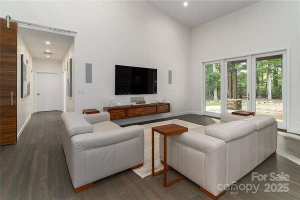 This property boasts impressive features, including three bedrooms and two bathrooms, situated on 1.5 acres of land. Built in 2020, the residence showcases SIP construction with a concrete base, utilizing fiber-reinforced concrete to eliminate cracks. Additional highlights include a tin roof with a 40-year warranty, LED high hats throughout, engineered bamboo flooring, and handicapped accessibility. An automated irrigation system further enhances the property's appeal. Externally, the house is complemented by rock walls, a comprehensive security camera system providing 360-degree coverage, and a 22 KVA generator. The backyard features a covered patio with stone flooring, ceiling fans, and lighting, alongside a fire pit surrounded by flagstones and river rock pebbles, and landscaped with diverse plants and boulders. The landscape includes fescue grass, junipers, Thuja Green Giant trees, mulch, river rocks, and boulders, with mature trees adding to the ambiance. The cemented driveway is equipped with LED lights and drainage systems lined with rocks. Upon entering, residents and guests are greeted by a black walnut solid wood pivot door, flagstone and river rock pebble flooring, and stoned pillars. Internally, the house boasts LED high hats, bamboo engineered flooring, an open floor plan with high ceilings, and premium finishes including large wooden cabinets, quartz countertops, and a gas fireplace. The master suite features its own AC system, custom-designed closets, and remote control window shades, while the master bath includes a walk-in shower and heated floor. Guest bedrooms offer custom-made decorations and window treatments. Additional amenities include a family room, guest bathroom, laundry room, and a spacious 3-car garage with epoxy flooring and car lift connections.