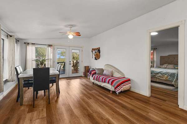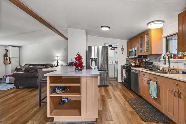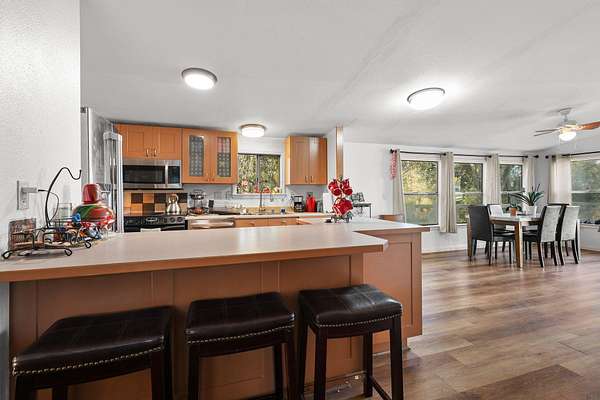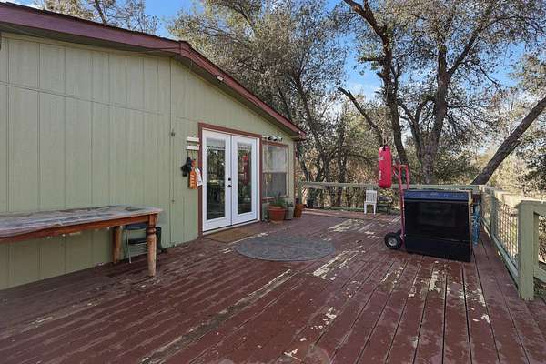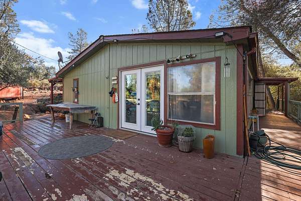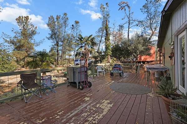 Tucked away down a peaceful country road, this charming 3-bedroom, 2-bath home offers privacy, space, and beautiful natural surroundings. Enter through your private gated entrance and take in the tranquil setting, surrounded by mature trees, fruit trees, and grapevines. Enjoy morning coffee or evening sunsets from the expansive deck overlooking the wooded views. Inside, you'll find a cozy wood stove perfect for cool evenings and a warm, inviting atmosphere throughout. With nearly 10 acres of usable land, there's plenty of room for hobbies, animals, gardening, or simply enjoying the open space. The property also includes a shop area and additional storage building, providing ample room for projects and tools. This is country living, peaceful, private, and full of possibilities!