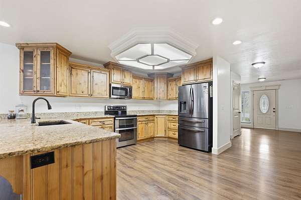 Once in a Lifetime Property!! 5 Acres along the Bear River with Beautiful Custom 5 Bedroom Home Built in 2016 with Detached Garage and 3 Water Shares!! This is THE DREAM property that you've waited and watched to hit the market. This custom-built home with wrap around porch captures the feel of the country and set off the road and backing the Bear River it's the perfect retreat. The home and garage are fully foam insulated every part of the home was custom designed with open kitchen, granite countertops, custom cabinetry, large master suite with separate shower and soaking tub. Two furnaces and two air conditioners for the home making it energy efficient. The large, detached garage is heated and cooled with private office overlooking the river. There are 7 220 plugs and overhead air compression in the garage. This is the perfect set up!! You MUST SEE to appreciate this property!! Come RETREAT from the city, float the Bear River with your family and enjoy the privacy of this BEAUTIFUL 5 Acre Property!! This is THE DREAM property that you've waited and watched to hit the market!! There is also an option to potentially subdivide off 2.5 Acres for another building lot as well. Call Agent Miriam Drury 801-661-9833 for Details and Come See!!