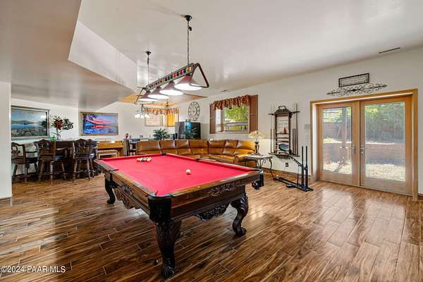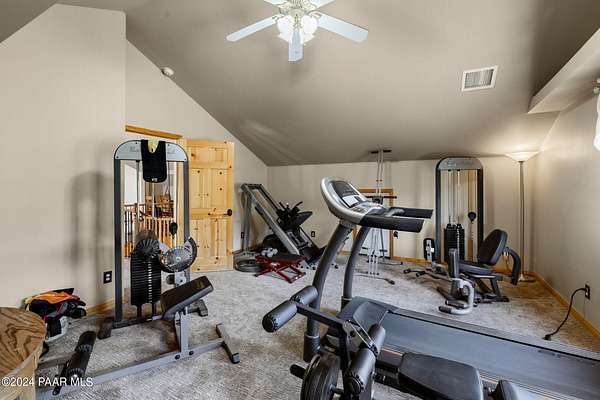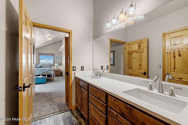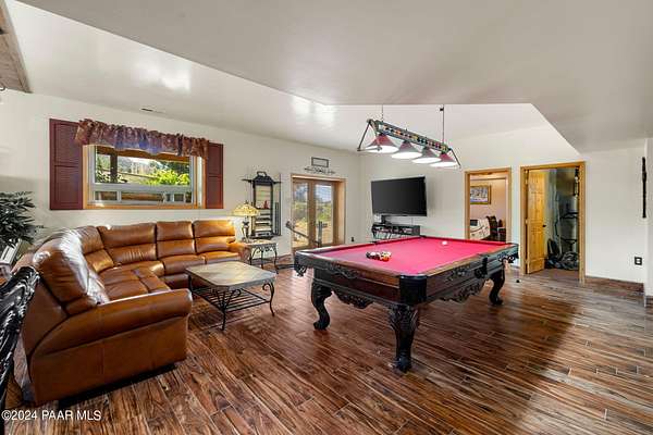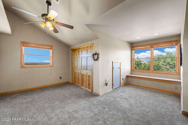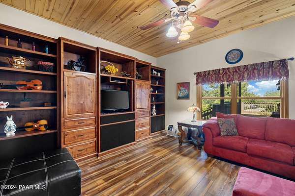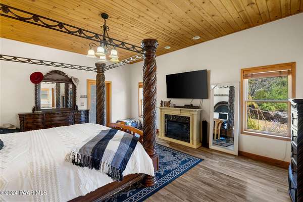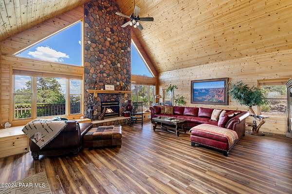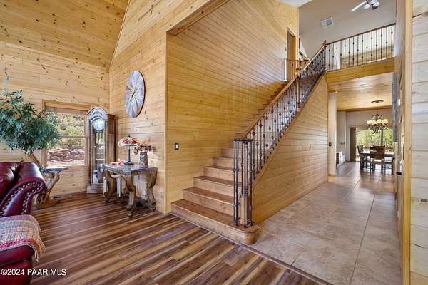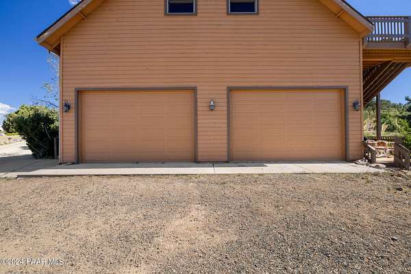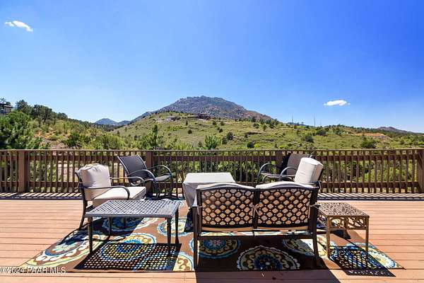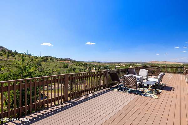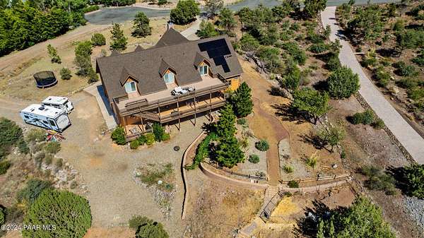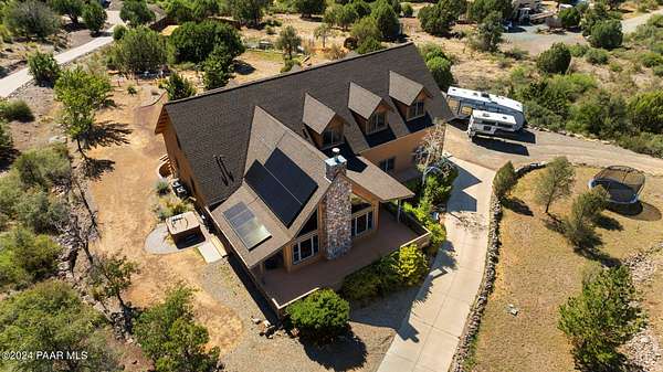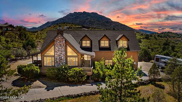 Gorgeous large home, perfect for multi-generational living at the base of Granite Mountain with spectacular views just minutes from downtown Prescott. This home includes a new roof w/new solar system in '23, HVAC and 2 propane water heaters new in '21. Beautiful tongue and groove ceilings, chefs kitchen with large island and all high end appliances.Main level has inviting large family room to cozy up by the fireplace, the primary bedroom with his/hers closets and a large jacuzzi tub. Also on the main living is an additional office/den, chefs kitchen, large oversized laundry room and access to the garage. Access the main deck from the kitchen for and enjoy the spectacular Granite Mountain views. Head upstairs to a large open living space with 4 addit'l bedrooms, a family room. 2 full baths and 3 french doors all accessing the top deck.Downstairs the walk-out basement has a huge entertaining space with wet bar and addit'l bedroom w/full bath, office space and access to backyard. Incredible amount of storage and plenty of living and entertaining space. 2000 sqft. of outdoor decks all on almost 3 acres with 2 large dog runs and room for the horses. Access to Granite Mtn trails border the property for easy access for hiking or horseback riding right from the property.Not too far out Williamson Valley. 10 minutes to Walmart or the pickle ball courts.