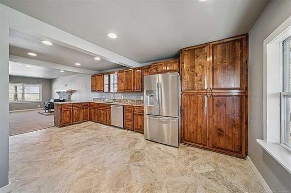 Est $1,850/moCountry Living in Town! This Beautiful Log siding native stone one-story Home sits on approximately 3.5 acres and has 3beds, 2 baths, large cozy updated living and spacious Kitchen. Carpet is 2 years old, Roof is 1-year old, water well 1-year old and you have option to buy additional land next to it. Additional concrete pad on property for shed, shop or garage whatever your heart desires. Circle drive is the best making it easy to get into and out of property. Don't wait to come see it!! It will go FAST!!!