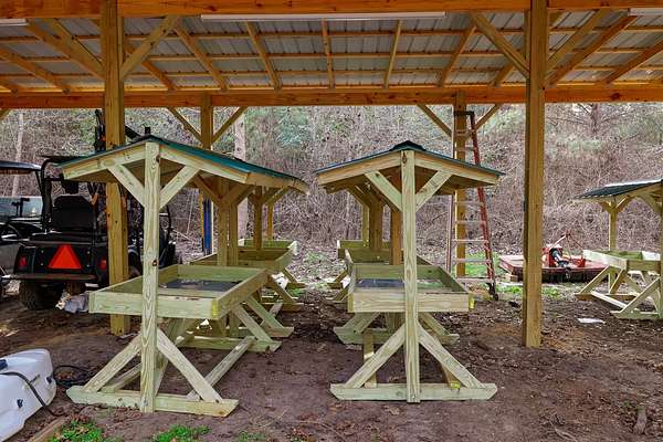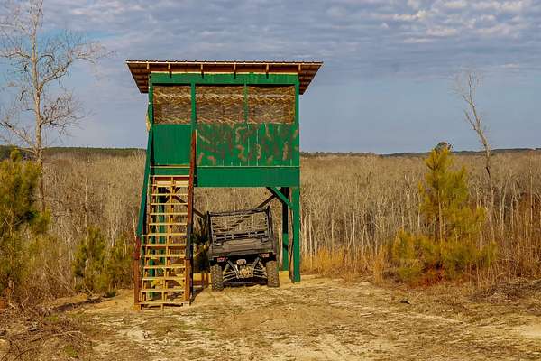 Rocky Comfort Creek Hunting Preserve is a fully turnkey hunting retreat located at 2729 Hadden Pond Road in Avera, Georgia, in Jefferson County. This professionally developed recreational and timber investment property is designed for the buyer who wants immediate enjoyment without additional setup. Just bring your camper and step into a tower stand. The recently upgraded campsite features a private well and two brand-new full-service camper hookups, including one covered camper space with an outdoor living area and full bathroom. Two large equipment sheds provide ample storage for tractors, implements, side-by-sides, and feed.