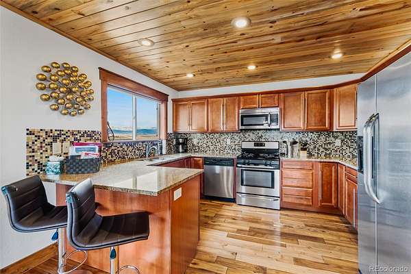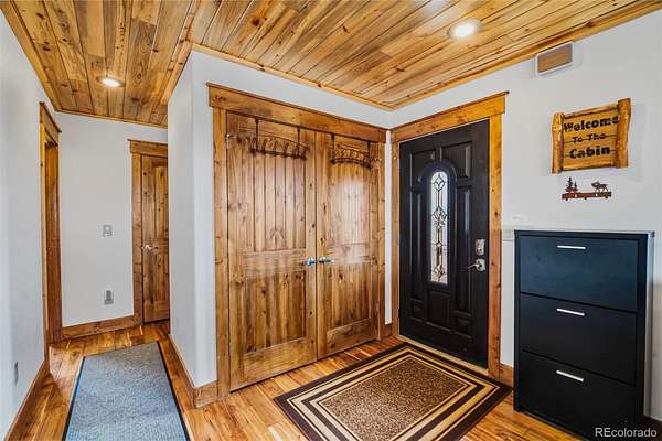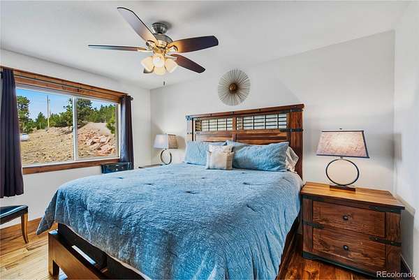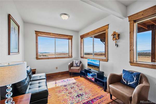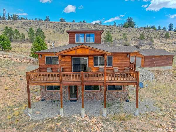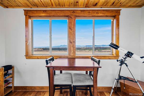 6.7 acres featuring majestic, unobstructed mountain views and breathtaking sunsets. This custom home showcases hand-planed wood plank finishes, granite countertops with buffed chiseled edges, pine beetle wood ceilings and high-end stainless steel appliances. Designed for comfort and enjoyment, the home offers 4 bedrooms, 3 bathrooms, a spacious game room with pool table, and a unique observation tower complete with a telescope. Cozy up by the gas fireplace or enjoy the efficiency of in-floor heating. Expansive windows fill the home with natural light and are complemented by custom window coverings. A radon mitigation system is already installed for added peace of mind. Fully furnished, turn key with a great rental history! Ideally located for outdoor enthusiasts, residents can enjoy private fishing access along the South Platte River, explore nearby Pike National Forest, or take a short drive to world-class skiing and snowboarding in Breckenridge.