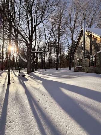 Located at the end of a truly stunning dirt road, this off-grid home and land offer a rare blend of serene solitude, historical provenance, and all the makings of a self-reliant lifestyle. Once the home of renowned artist Hazel Tyrrell, (who, by her own estimate, carved more than 6,000 birds, many of which still fetch top dollar at auction) the property carries a unique creative legacy. The home itself enjoys ever-changing views of a large beaver flow (approximately 6 acres) in the backyard, mature fruit trees, and perhaps most exciting of all, a fenced half-acre blueberry meadow loaded with highly productive high bush blueberries. Ambling through the forest, you'll find uneven topography filled with niche wildlife habitat and photo-worthy views in every direction. At the back of the parcel lies a large pond, with approximately 3.75 acres included in the property. It's hard to put into words just how special this property is--you truly must see it for yourself. Schedule your showing before someone else claims this dreamscape as their own.