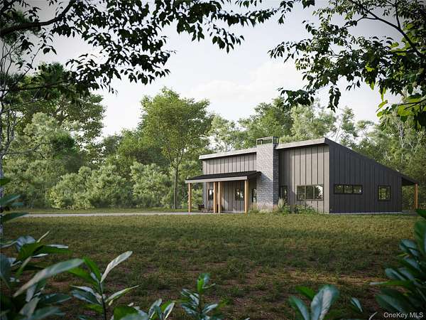 Modern new construction on 3.4 private wooded acres near Bethel Woods Performing Arts Center in the Catskills, just 1 hr 40 min from NYC. This 1,700 sq ft home features soaring 16-ft ceilings, wide white oak floors, black-trim windows, and an open kitchen with island, pantry, and stainless appliances. The primary suite offers a walk-in closet and spa-style bath. Three additional bedrooms include high ceilings and wooded views, plus two more full baths--one with washer/dryer. Enjoy covered front and rear porches, a mudroom for snowy days, and attic storage. Still under construction, buyers can choose finishes or work with the designer. Minutes to White Lake and Lake Superior State Park for swimming, kayaking, and hiking. Ideal as a full-time home, vacation retreat, or short-term rental in the heart of the Catskills. Tax records state 0 square feet. Seller provided square footage.