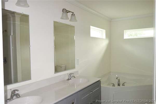 - Bath In Primary Bedroom, Ceiling Fans, Crown Molding, Double Vanity, Eat In Kitchen, Kitchen Dining Combo, Kitchen Island, Open Concept, Separate Shower, Walk In Closets, Walk In Shower, Window Treatments