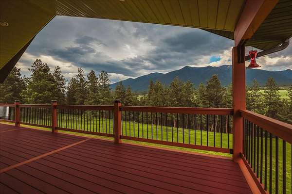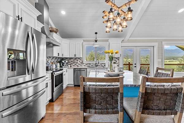 Situated in a storybook setting with lush rolling hills and sweeping mountain views this hand crafted home captures the best of Big Sky Country. Located on the coveted east side of the valley and against a towering mountain backdrop the green meadows and forested borders create a truly captivating setting. Featuring an open floor plan with expansive windows to bring in the scenic views of the Whitefish Mountain Range the completely custom home showcases quality in every detail. Constructed with natural stones and polished hardwoods the main level living area is a work of art. At the center of the home the gourmet kitchen is adorned with granite countertops, handmade cabinetry, and chandelier lighting that blend elegance with master craftsmanship. The open family room features vaulted ceilings, a stone accent wall, and a corner fireplace that create a warm and inviting space to enjoy family and friends. Retreat to the covered deck for evening gatherings and bask in the alpine mountain glow as the sun sets over the horizon. The primary suite is a private sanctuary with vaulted ceilings & a spa-like en-suite complete with a soaking tub and exquisite tile shower. Climb the ladder to a cozy loft that was created from your childhood dreams and is the perfect getaway for your young visitors. Downstairs the spacious 3 stall garage & finished living area are perfect overflow for company, a home office or gym space. Polished to perfection this space includes finished flooring throughout, rustic wood accent walls, radiant floor heat and a second laundry area. This unique basement garage is finished to impeccable quality and can easily be used as additional living space. As such, it is included in the total living square footage of the home. Hobbyists or collectors will appreciate the spacious detached shop tucked at the edge of the property providing ample covered storage and additional work space. This is a truly special Montana property-offering privacy, beauty, and a lifestyle to be cherished for generations. With the option of being sold completely turn key this property is ready for you to step in and start making memories.