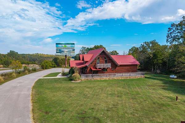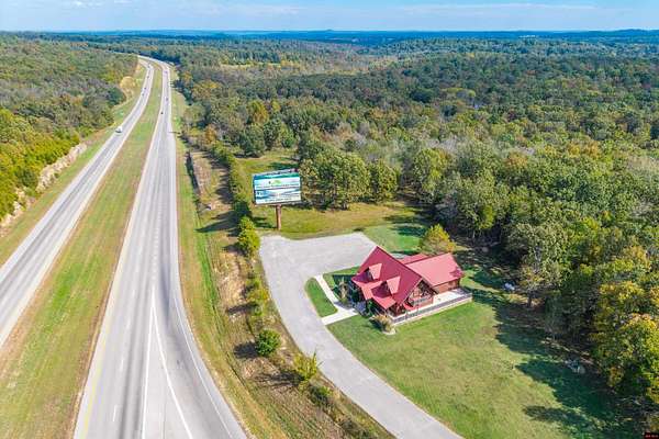 BRING YOUR IMAGINATION! Discover 19.6 unrestricted ac m/l with over 2,200 feet of prime frontage on Hwy 62/412 Bypass (12,000 traffic count), the perfect location for endless commercial possibilities. Property also offers access from Golden Star Lane off Hwy 5 S. A 4-panel billboard is included to market your future business -- excellent exposure in a high-traffic area! ARDOT traffic count 12,000.The property features a custom-built 2,536 sq. ft. log home, currently operating as a successful AirBnB. Inside, you'll find an open floor plan with vaulted ceilings, a stunning stone gas-log fireplace, and a spacious kitchen and dining area ideal for entertaining. The main level includes a large master suite with private bath, a bonus room, and half bath. Upstairs offers a second bedroom, full bath, and loft set up as an additional sleeping area. Use the log home as your primary residence, continue as an income-producing AirBnB, or develop the remaining acreage -- the possibilities are endless!