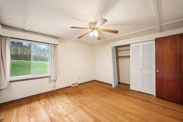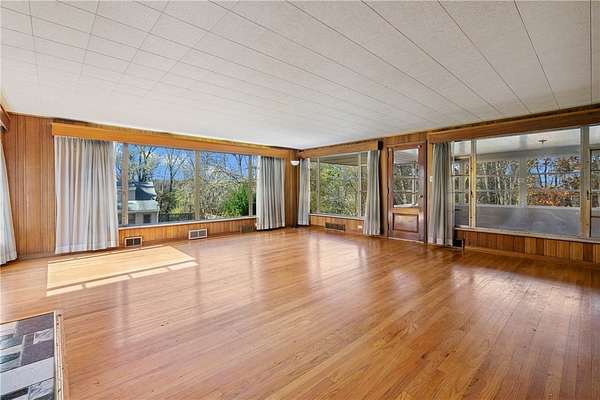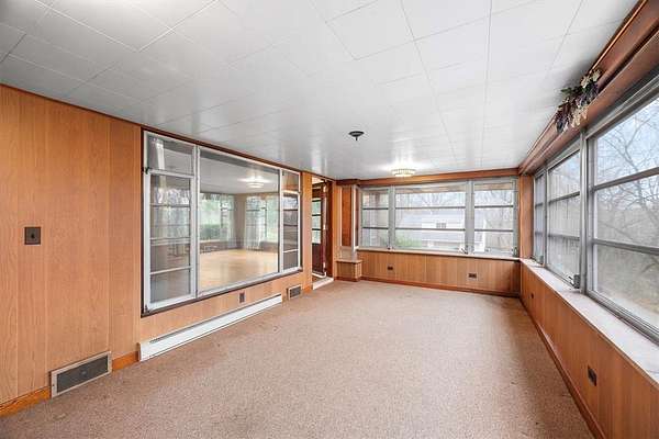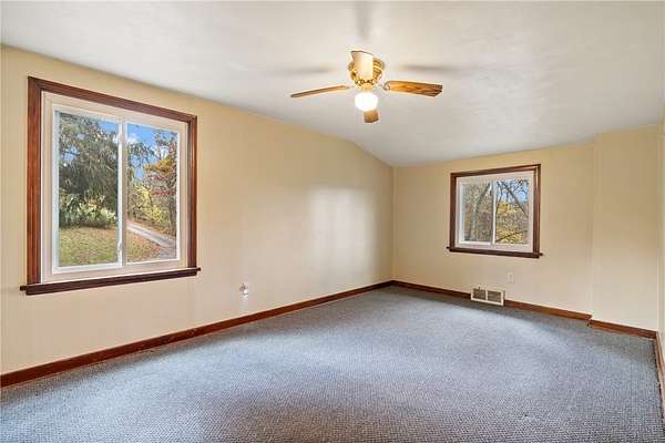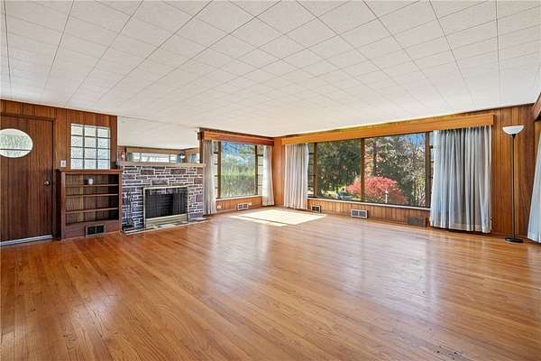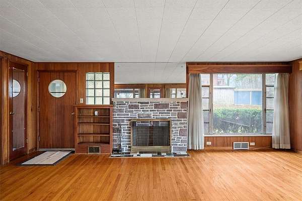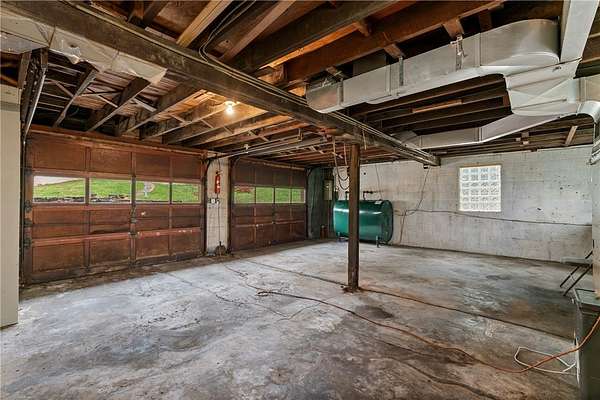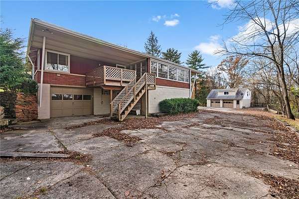 Enjoy endless opportunity with this unique 1.5-acre property with a 3-bedroom home plus separate garage building with 1-bedroom apartment plus 5 garage bays! The main home blends mid-century modern charm with serene wooded surroundings. Expansive windows and a bright three-seasons room invite the outdoors in while gorgeous hardwood floors flow throughout. The vintage kitchen is so charming and could open to the living area. Downstairs is a large game room, utility and laundry areas, and two 1-car garages. Across the property, the garage building is a dream setup for car enthusiasts or the trades, featuring five garage bays - two standard and three huge - plus a cozy one-bedroom apartment above. New furnace & elec panel 2022, new garage safety cables 2025, new oil tanks 2025. Whether you're looking for a private residence, a multi-purpose workspace, or an investment opportunity, this versatile property combines privacy, function, and character in Fox Chapel Schools.