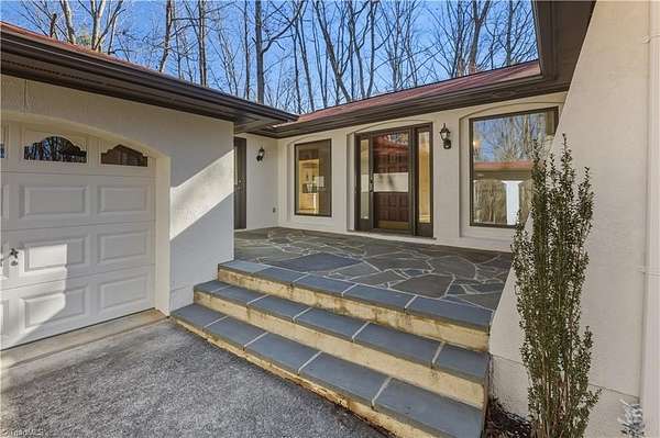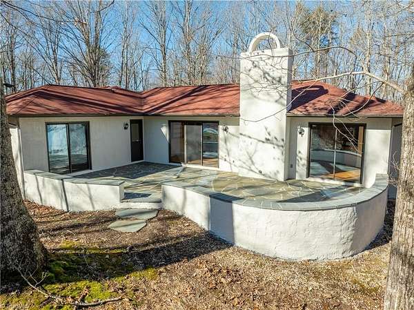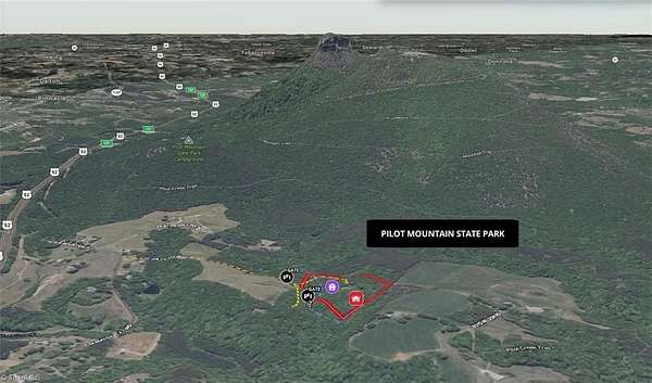 9.4+- secluded acres at end of 2,800+ foot long paved driveway located just 3 miles from downtown Pilot Mountain, NC and minutes from Pilot Mountain State Park. This unique property features a 1987-built home includes an indoor pool (currently non-operational) and secluded among 9 acres of mature hardwood forest, creating an exceptionally private setting with a small creek and no deed restrictions--ideal for those seeking freedom and space. Fiber internet and buried power add modern convenience, while geothermal HVAC serves the original home and a gas furnace with AC serves the pool area. A detached storage building with carport provides additional covered parking and workspace. Surry County's low 0.55% property tax rate adds to the appeal.13 minutes to King, NC, and roughly 30 minutes to downtown Winston-Salem. Visit listing agent's website for additional details, and access to attachments and video tour