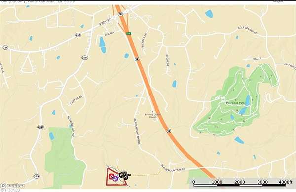 From Key Street/NC HWY 268 take Black Mountain Road 1.8 miles and turn right on Olde Pilot Trail. Continue 0.4 miles on Olde Pilot Trail, gated entrance on left.