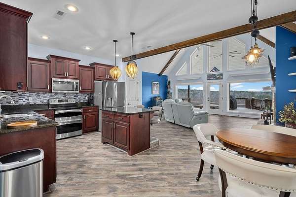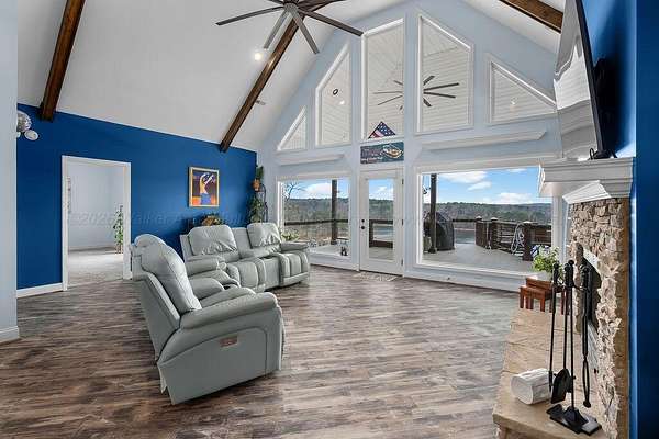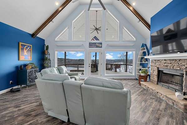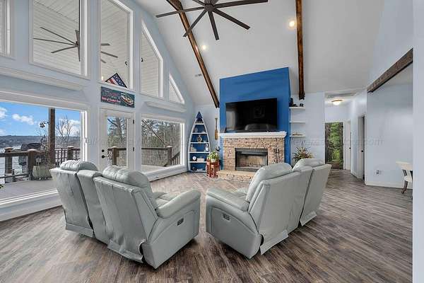 Est $6,133/moExperience the ultimate Smith Lake sunset from ''Lookout Lodge,'' a 5BR/4BA gated retreat overlooking Bailey's Bridge. The interior is optimized for multi-generational living with dual master suites (Main Level & Lower Level) & a lower-level kitchenette & recreation area. Safety is highlighted by the ''Vortex Vault'' guest bed that converts into a certified F5 storm shelter.
