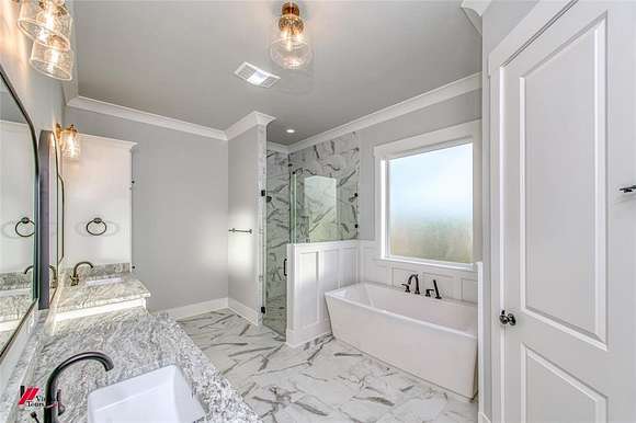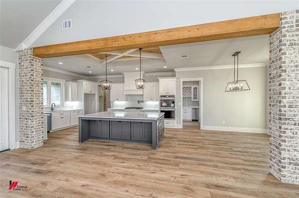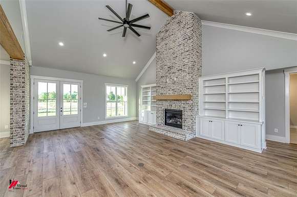 Introducing this stunning new construction home, where custom craftsmanship and modern luxury combine seamlessly. This 5 bedroom, 3.5 bath residence boasts 3,133 sq ft of thoughtfully designed living space and is nestled on a beautifully landscaped 2.46 acre lot. A 3 car side entry garage adds both functionality and curb appeal. From the moment you arrive, you'll be drawn to the reclaimed beams, brick steps and porch, vertical siding, and lush landscaping that create a warm and inviting exterior. Step inside to discover an open floor plan with views of the expansive rear yard. The living room features a vaulted ceiling with beam accents and a striking brick fireplace framed by custom built-in cabinetry, creating a cozy and elegant centerpiece. The kitchen is a chef's dream, complete with brick columns, a gas cooktop, double ovens, custom soft-close cabinetry, an arabesque tile backsplash, stylish pendant lighting, and an 8 foot island offering storage and stunning countertops. A dedicated wine storage area opens into a separate oversized butler's pantry, blending beauty and practicality. The luxurious primary suite is your private retreat, featuring double vanities, a custom shower, a freestanding tub, and a walk-in closet with direct access to the laundry room. The main floor includes two additional bedrooms, while the upstairs layout offers versatility with two full bedrooms and a bath or one bedroom and a bonus room perfect for a media room, office, or home gym. Outdoor living is at its finest with a fully equipped kitchen including a fridge, grill, and sink, all adjacent to a cozy patio area with a fireplace. The beautifully landscaped yard features sod, an irrigation system, and a full board fence, providing both beauty and privacy. This custom home combines timeless elegance, modern amenities, and a serene setting to create the perfect space for living and entertaining. Seller will not respond to any offer unless it is a minimum sales price of $645,000.00