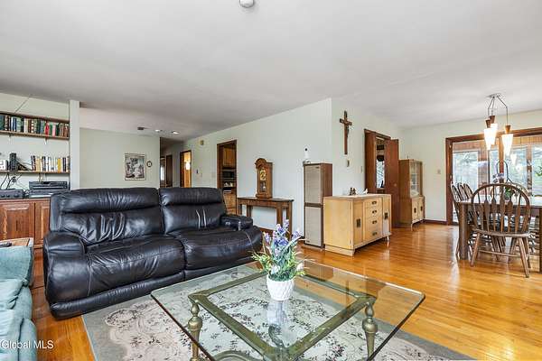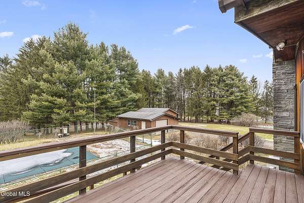 OPEN HOUSE MONDAY 1/19 3pm-6pm A truly unique property offering privacy, versatility, and exceptional amenities on nearly 3 acres in the East Greenbush School District. Conveniently located just off the highway, this home provides a peaceful setting while being moments from shopping, dining, and everyday conveniences. The residence features a functional and inviting layout with generous living spaces, abundant natural light, and a beautiful sunroom perfect for year-round enjoyment. Accessibility is enhanced with a mobility ramp, offering ease and comfort for all. Outdoor amenities set this property apart, including a private fishing/kayaking pond (with lighting), an in-ground pool, and a tennis/pickleball court that is equipped to becomes a hockey rink in the winter. Whether for recreation, entertaining, or relaxation, the grounds offer endless possibilities. A standout feature is the impressive garage spaces, ideal for car enthusiasts, hobbyists, storage, or home-based businesses. In addition to the 2 car attached garage there is a 12x16 shed and a separate 6 car garage. The expansive lot offers exceptional privacy while maintaining a prime location close to major routes and Capital Region amenities. This rare offering combines space, recreation, and convenience in one remarkable East Greenbush location. A unique opportunity not to be missed!