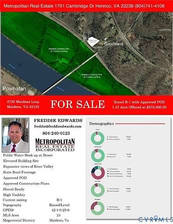 Elevate Your Business to New Heights! Imagine this: Your business, soaring above the ordinary your head literally in the clouds on a stunning hilltop perch overlooking the majestic James River. Miles of breathtaking views stretch out before you in Goochland County, Virginia. No compromises, just pure inspiration. Ready to Build Your Vision? This prime B-1 Zoned property comes fully loaded: All construction approvals signed and sealed-no delays, just action! Space for your 6,000 sq ft dream building, tailored to your needs. Nestled along peaceful West River Road, just beyond the Courthouse Overlay District for that perfect blend of serenity and accessibility. Stay Connected, Stay Inspired. Gigabit internet zips you to the world at warp speed, while the rolling countryside and endless open skies fuel your creativity. Remote team? Executive retreat? Innovation hub? The possibilities are as vast as the horizon. Your Move Starts Here-Let's Make It Happen! What if this was the launchpad your business has been craving? Current Site proposal allows for 18-wheeler delivery.