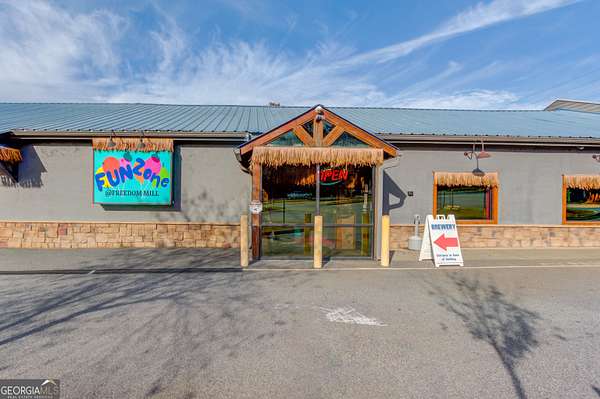2730 Spot Road offers over 37,000 SF of versatile commercial space at one of Forsyth County's most visible intersections. Featuring a two-story taproom and event hall, flexible secondary event areas, and specialty amenities including axe-throwing galleries and a professional-grade indoor shooting range, the property is built for entertainment, retail, hospitality, or community use. With 3.22 acres, dual frontage, 90+ parking spaces, and nearly 40,000 CPD along Highway 9, the site delivers exceptional exposure and multiple redevelopment paths. The property is surrounded by affluent neighborhoods such as Vickery Village, Polo Golf & Country Club, Midway, and Matt/Coal Mountain, where household incomes often exceed $150K-$200K+. This strong consumer base supports elevated retail, destination entertainment, and high-quality service concepts.