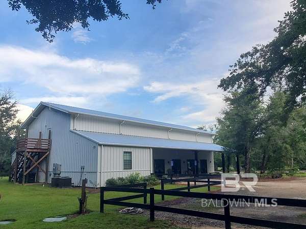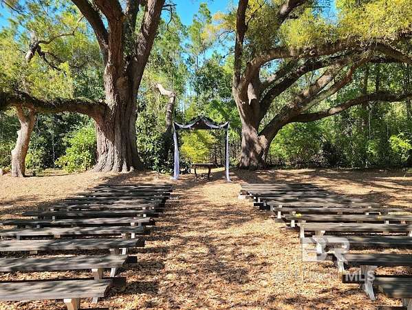 OWNER FINANCING for qualified buyers. Exquisite property filled with magnificent oaks, landscaping and pond. Currently this property is being used as a wedding and event venue but has a lot of potential uses (eg. family compound, barndominium,etc). The venue's main hall has rooms on each side that includes an ensuite 1/2 bath, the 64'X36' main hall has 64'x15' covered porches on each side, a 15'x15' main entrance porch, his and hers bathrooms with 2 stalls each and a 15'X20' prep kitchen. There is parking in the main lot for 46 cars and additional parking in grass areas. The building has a capacity of 200 guests. A ceremony area under two large oak trees comes with 28 benches and a beautiful arch. Included is a detached 3 bedroom 3 bathroom 1300sq ft home presently under renovation. This property is in a convenient location to the beach, OWA amusement park, Pensacola, Gulf shores, Gulf State Park etc. Also offered as a commercial listing under MLS#388534. Buyer to verify all information during due diligence.