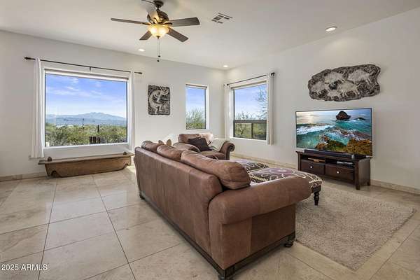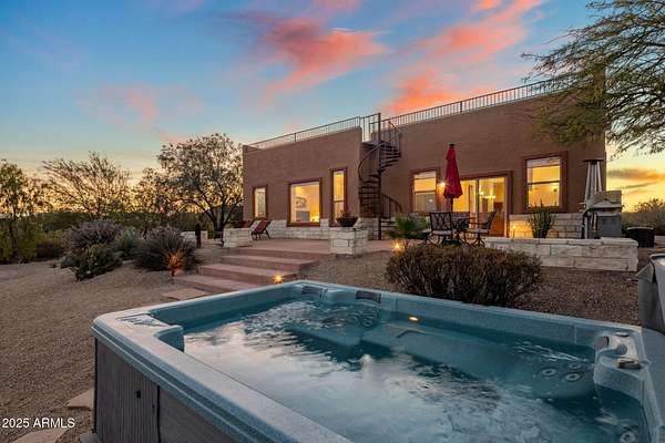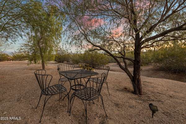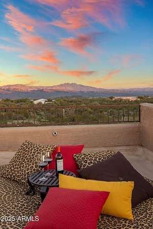 Located in the panoramic Rio Verde Foothills, adjacent to Scottsdale with all its amenities, this home offers unobstructed views of the majestic Four Peaks with the beautiful Sonoran Desert at your doorstep. Secluded at the end of a private road, the 2.5 Acre estate consists of two separate parcels, each with their well share (only three in total), all fenced, well maintained enhancing the natural beauty of the desert landscape. Enter through your private wrought iron gate and be greeted by a giant Saguaro perfectly landscaped into the center of your paved circular driveway leading to the entrance of your new home delicately shaded by beautiful native trees and lovely landscaping. The home itself is meticulous and features 4 B, 2.5 BA, an open versatile split floorplan with that ... soft contemporary flair so much desired today, bright with clean lines, clever use of space and yet warm and welcoming. An inviting central atrium offers extra living space and provides wonderful light throughout the home. The fully equipped kitchen boasts stainless steel appliances, sleek custom wood cabinetry and a large granite center island with bar seating. This leads seamlessly to the dining and open living areas, with large windows providing incredible views and glass doors leading to the back patio, perfect for that indoor outdoor flexibility while entertaining guests, or just having fun family gatherings. The bedrooms consist of a private primary suite with an ensuite bathroom, including double sinks, walk in shower, soaking tub with jets, and a walk-in closet. Two additional good-sized bedrooms are separated by a Jack and Jill bathroom with double sinks and a separate toilet room. The fourth bedroom/flex room is currently used as an office. Enjoy the outdoor living by watching the sun rise behind the mountains while relaxing in your heated spa or spend time on the cozy roof terrace with a good book taking in the amazing views and the colorful sunsets of the Southwest. This versatile property includes the adjacent lot to the South with the same beautiful views, fenced and cleared from debris with a large elevated flat view area. The lot includes power on site and its own well share ready to be developed to the new owners' preferences. A home could be added for additional family members or used as a guest house, a full horse set up with a barn, turnouts and round pen could transform the property into a private horse ranch, or the lot could be sold separately developed or undeveloped as needed. This sale includes two adjacent lots: APN#219-37-441-D where the house sits and APN#219-37-441-F a vacant lot, constituting a total area of 2.5 Acres with two separate well shares out of 3 shares total. Look no further, this is it!