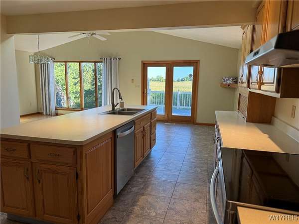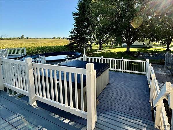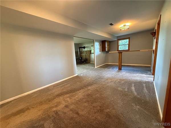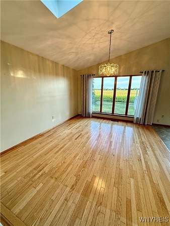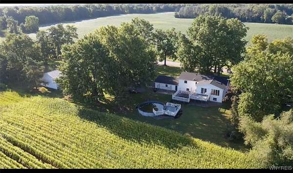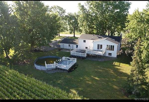 Beautiful Raised Ranch on 3.9 Acres with Scenic Views & Barn! Welcome to your private retreat in the Oakfield Central School System! This meticulously maintained four-bedroom raised ranch is perfectly set on 3+ acres, surrounded by stunning farm field views-there isn't a bad view from any window in the house! The spacious main level features a gorgeous country kitchen with custom Hickory cabinetry, vaulted ceilings, an oversized island, and dining area with gleaming wood floors that overlook the backyard. Step out to a two-tiered deck leading to an above-ground pool with its own deck-ideal for entertaining or relaxing. An oversized living room, three bedrooms, and a full bath complete the upstairs. The lower level offers even more living space with a cozy family room warmed by a wood-burning stove, a separate bar room perfect for gatherings, a fourth bedroom, half bath, and a bonus utility/playroom to use as you choose. Outside, you'll love the 30' x 48' barn with 220 electric, attached 2.5-car garage, and peaceful rural setting on a quiet road. This property truly is worth the ride you will not be disappointed!