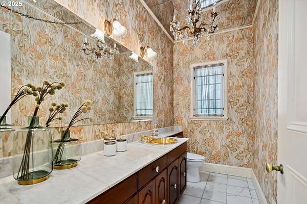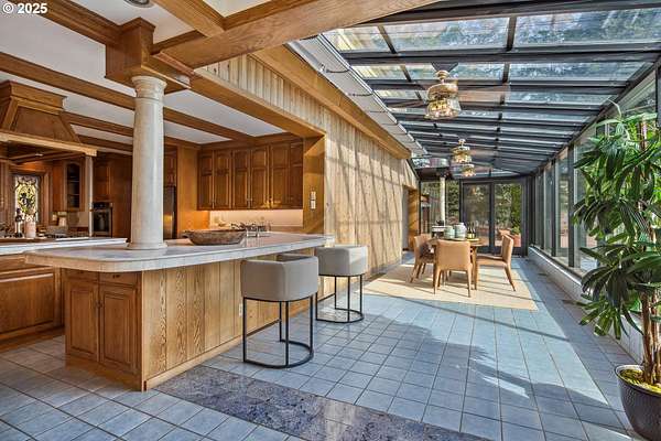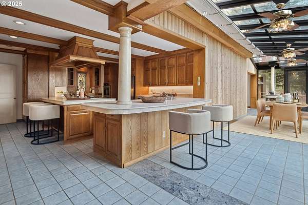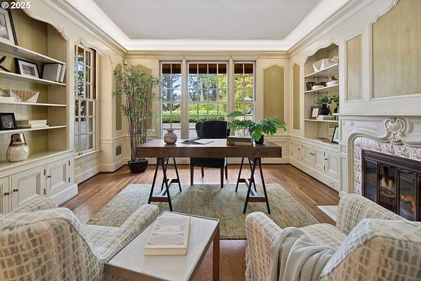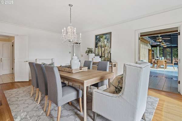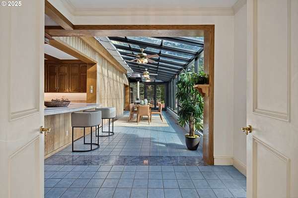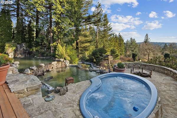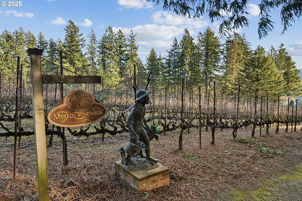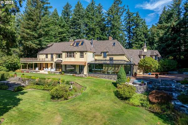 Nestled on an incredibly rare eight private acres in Portland's prestigious Southwest Hills, the historic Merlo Estate is a rare opportunity to enjoy timeless European sophistication in a stunning vineyard setting designed for epic entertaining. Built in 1939, this stately French Provincial residence was home to influential Portlanders whose business, civic and philanthropic legacies shaped the city. This refined sanctuary features grand entertaining spaces indoors and out, boasting breathtaking vineyard views and resort-style amenities-including a saltwater pool, private tennis courts, and a fully equipped outdoor kitchen. Steeped in a rich history with a timeless allure, this extraordinary estate awaits its next chapter. Located in unincorporated Multnomah County. Features include gated entrance, French Provincial architecture with stucco exterior, an attached three-car garage and detached 1070 sq. ft. garage with industrial kitchen, break room, & workshop, saltwater pool, lighted tennis court and vineyards.Behind the grand gates, this estate unfolds like a storybook, blending classic European charm with an entertainer's dream setting. The timeless architecture-tall, steeply pitched hipped roof, a flat stucco facade adorned with painted shutters, copper accents, and an arched entryway-epitomizes the enduring appeal of French Provincial design, a style that was second only to Colonial Revival in popularity at the time of construction.Step inside, where warmth and refinement blend seamlessly throughout the home. The interiors, designed for intimate gatherings and lavish entertaining, offer expansive rooms, exquisite millwork custom-designed for Merlo, and rooms bathed in natural light. The main floor's living room offers breathtaking views of the surrounding landscape. Opening directly to the expansive patio, this space provides a stunning backdrop of the pool and vineyard for hosting unforgettable memories.