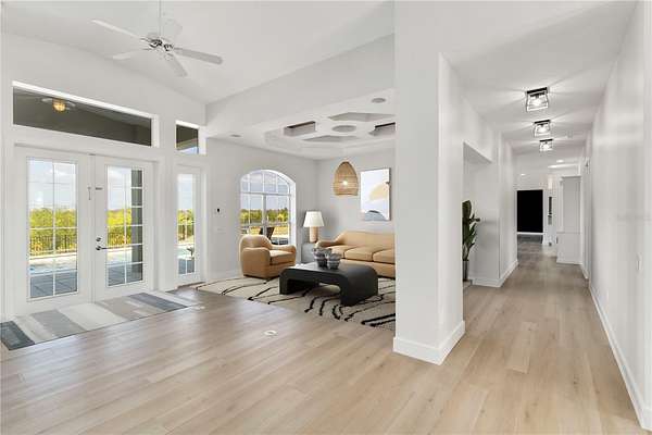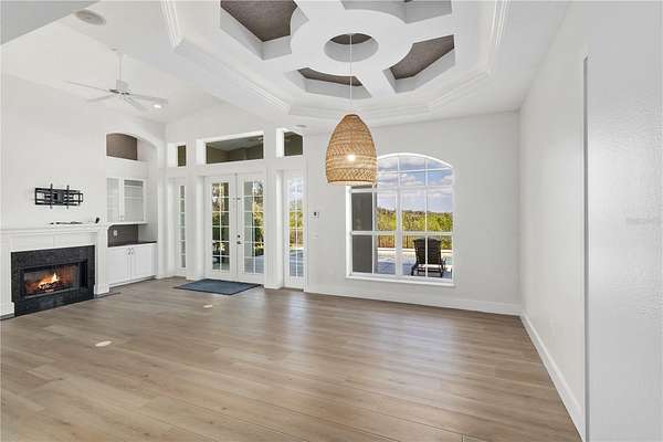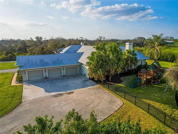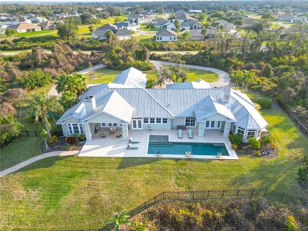 One or more photo(s) has been virtually staged. Welcome to this one-of-a-kind 3.05-acre WATERFRONT private estate nestled in Herons Cove.Through your private gates is a STUNNING 4 bedroom, 4.5 baths, 4652 sq ft LUXURIOUS dream home with an oversized 3 car garage situated in the middle of this private estate. An open floor plan with natural light awaits you with over 12' ceilings, custom cabinetry, fireplace, impact doors and windows, french doors, oak luxury vinyl flooring, Simply Safe Security system, and a full-house propane back-up generator. Each bedroom has its own en-suite bathroom and large walk-in closets. The master bedroom suite has a sitting area, custom made coffered ceiling with an en-suite bathroom with a toilet closet, jacuzzi tub, dual sinks and plantation shutters. The large walk-in closet has custom built-ins and a hidden safe. The open dining room has a fireplace, coffered ceiling and french doors that lead to the lanai/pool area. A large pantry and custom bar with a bar sink, custom counters, cabinets and wine fridge lead to the huge gourmet kitchen and family room with french doors that lead to the lanai. This "chef's dream" bright and open kitchen has all upgraded appliances including a 6 burner gas stove with professional-grade oven, refrigerator, microwave, 2 dishwashers, and prep sink on a 5'x7' island. The laundry room has new appliances, extra refrigerator and ice maker. The beautiful french doors lead to a fenced-in outside paradise in your private back yard. The large lanai has lovely pavers, a covered sitting area with a fireplace and a saltwater pool with custom fountains. The paver walkway leads to a separate sitting area with a fire-pit and continues to your newly resurfaced private dock with a 15,000 pound boat lift that overlooks a nature preserve. NO FLOOD DAMAGE and NO FLOOD INSURANCE REQUIRED! If you are looking for your own PRIVATE PARADISE this estate is for you! A STUNNING home with all the upgrades in this beautiful quiet oasis that offers fishing, boating, and even a fenced-in play area with a built-in playground. Drop your boat for a day trip with ocean access through Peace River into Charlotte Harbor or take a short 18 minute drive to downtown Punta Gorda to enjoy our local restaurants and shops. Punta Gorda airport is just 11.3 miles (19 minutes) away.