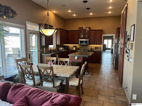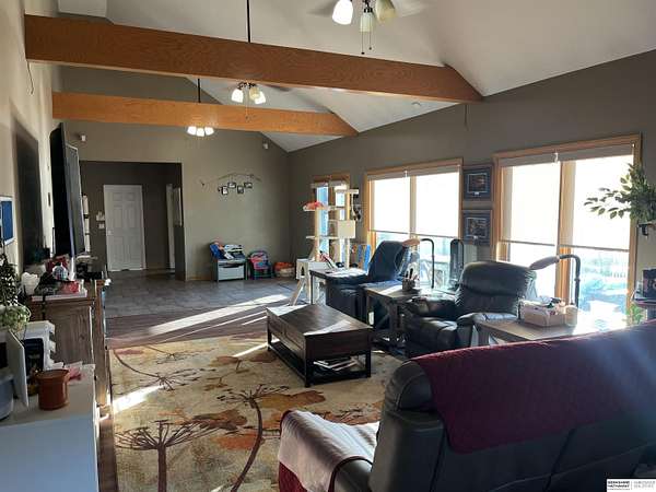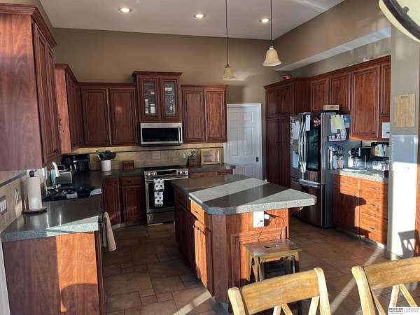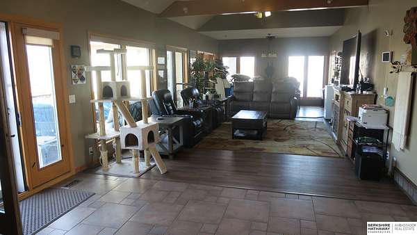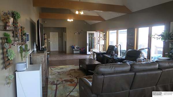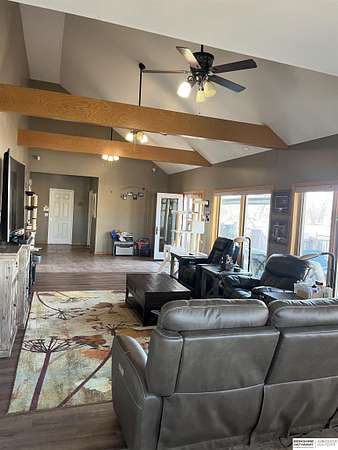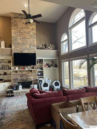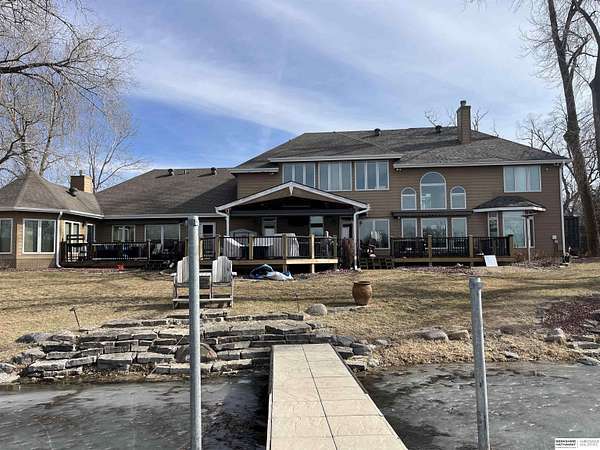 Elaine Milroy, M: 402-690-3735, decustom@speednet.com, https://www.bhhsamb.com - Enjoy the drive down the gorgeous lane from the main entrance to the home. Lots of trees and a beautiful view of the lake on over 11 acres. The property offers views from every direction. Appx 48 acre lake. Grand home sits off the road next to the outbuilding and raised gardens. Professionally landscaped with water features. Spacious deck, partially covered and sunroom. Outdoor kitchen area. Soaring ceilings and lots of large windows. Beautiful custom 2 story fireplace. The Second Level offers flex areas and 4 large bedrooms. This is a rare opportunity to purchase a private retreat with low HOA fees and Low tax levy. Close to west Omaha/Elkhorn. Includes a 45x36 outbuilding, a newswim spa on the deck, and blinds are motorized.