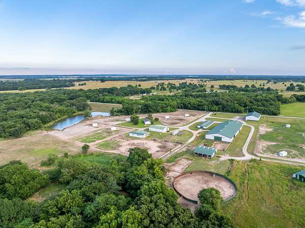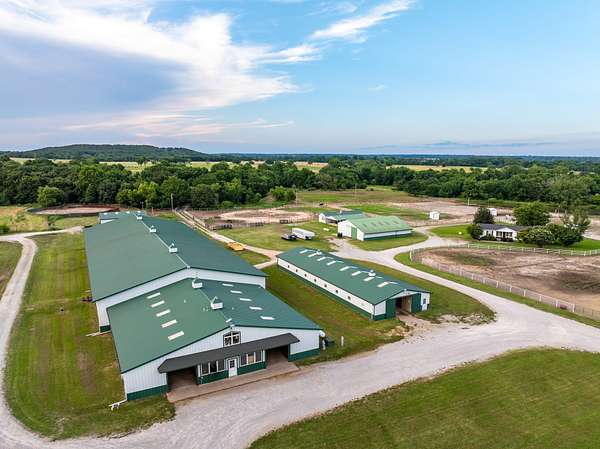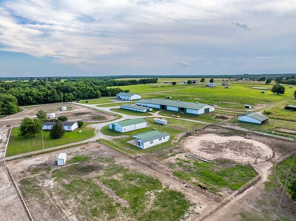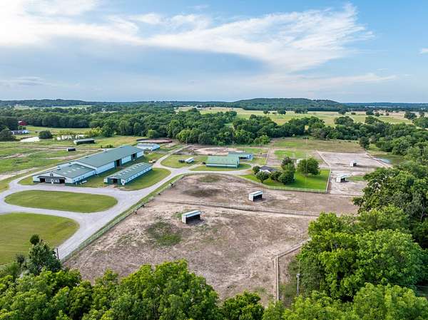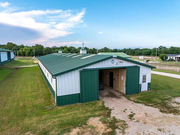 Welcome to a premier equestrian ranch located in Wagoner County, Oklahoma, 100.73 +/- acres of highly improved land designed with the serious equestrians in mind! Whether you're a professional trainer, roper, or barrel racer, this property offers everything you need in one exceptional location! At the heart of the property is a massive 200' x 82' indoor riding arena, providing year-round riding and training potential. Attached is a 64' x 72' barn featuring well-appointed horse stalls, a spacious tack room, wash bay, an office, and an upstairs apartment--ideal for trainers or guests. The 64' x 46' mare barn and an additional 112' x 36' barn with stalls offer ample room for housing or boarding horses. Historically, these stalls have been boarded for $600/m and pasture board have been rented for $300-$350/m. There are a total of 8 foaling stalls that have generated $10,000-$20,000/m equipped with cameras/monitoring systems. Another primary feature of the property is the grand event venue, perfect for hosting gatherings, clinics, competitions, or even weddings--bringing both function and elegance to the ranch (P&L can be provided upon request). Equestrians will also appreciate the two round pens and the open field on the north end, which provides additional space for grazing, riding or building an additional arena. The ranch is well-equipped for a variety of disciplines! The three-bedroom, two-bathroom home offers comfortable on-site living, while a large pond enhances the natural beauty of the land and provides a scenic spot for fishing or relaxing. With many of the paddocks constructed of pipe and cable fencing, you can ensure the safety and well-being of your horses. This ranch has been thoughtfully developed making this 100.73 +/- acres a turn-key equestrian facility with limitless potential! All showings are by appointment only. For more information or to schedule a private viewing please contact Steele Schwonke at (918) 424-6065 .