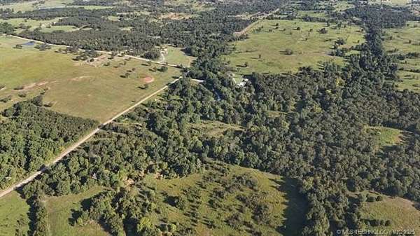 The property offers frontage along S 433rd West Ave and features two seasonal creeks, natural growth of wild blackberries, sand plums, and wild strawberries. Power is available on site, there is a well that needs a new pump, and a septic system is already in place. A pipeline runs along the front, and there is a remaining barn floor from a previous structure.
