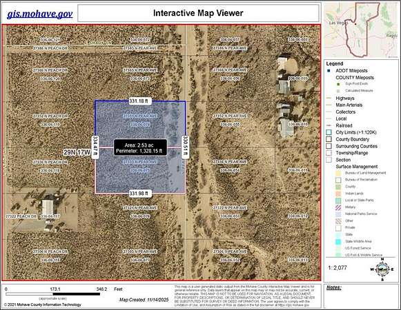HUGE price change! Great price & great location. Close to pavement but away from it all! 2.5 Acres! Incredible value on 2 adjoining lots (27335 & 27351 N Pear Ave) totaling 2.5 acres in scenic Meadview, AZ just 30 mins to Lake Mead s South Cove & close to the Grand Canyon Skywalk. Flat, buildable terrain with Grand Wash Cliffs views, electric nearby, and minimal restrictions. Zoned for site-built, manufactured, or RV use, with no building timeline required. $50/year membership in the Meadview Civic Association grants access to pool, pickleball, clubhouse, tennis, and many other community activities. The area offers world-class boating, off-roading, fishing, hiking, and is part of a designated dark sky community known for its stargazing. Whether you're looking to build, invest, RV, or just escape city life, this property offers the freedom, beauty, and price point to make it all possible. At just $23,999 total, this is one of the best-priced 2.5-acre parcels in the region with utilities close by. 11 miles to Lake Mead, short drive to Grand Canyon West/GC Skywalk, mining areas, trails, hunting, off-roading, never ending views of the Grand Wash Cliffs, Joshua Trees, and nature! Restaurants, shopping, and so much more! Escape the city life today. You don't have to live in Hollywood to surround yourself by stars! Annual association dues are $50.00 per parcel.