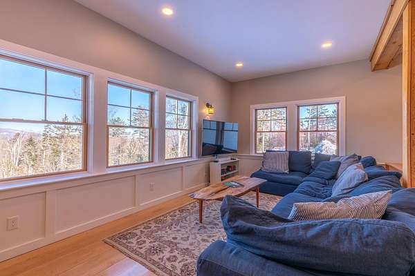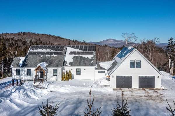 When every window offers a view, the outside world feels close--yet comfortably held at a distance on winter days like these. Set high in the mountains at over 2,100 feet, this inviting contemporary retreat is surrounded by sweeping views in nearly every direction. Just minutes from Okemo Mountain Resort, 30 minutes to Killington, or 35 minutes to Bromley or Magic Mountain--outdoor recreation abounds. The home enjoys 180-degree vistas from east to west, with distant Adirondack peaks visible on clear days and dramatic sunsets that gently wash the sky in color each evening. Built in 2021, the home blends modern comfort with thoughtful, livable design. Four bedrooms and five bathrooms provide easy space for family and guests, while recent additions--including an oversized two-car garage, a welcoming mudroom, and a private upstairs guest suite with a 3/4 bath--make daily living feel effortless and warm. Energy-efficient features such as a 15kW solar system, battery backup, and EV charger offer peace of mind through every season. Nestled into natural stonework and set atop 6.2 acres, the home feels quietly embraced by the landscape, offering privacy, calm, and a deep connection to the mountains. It's a place to linger, to watch the weather roll in, and to truly feel at home. With easy access to ski mountains, shopping, and the charming village of Belmont, the location is as convenient as it is serene--ideal as a vacation retreat or a comfortable, inspiring place to work from home.