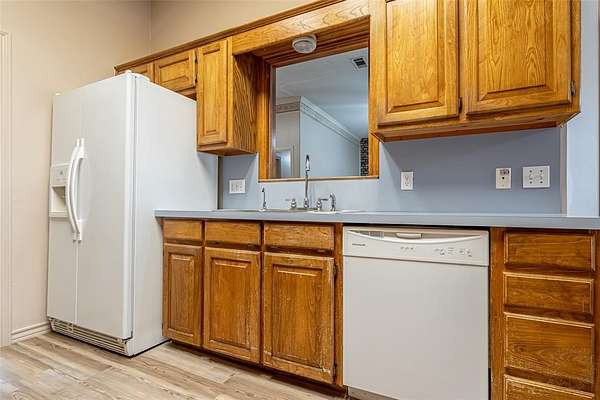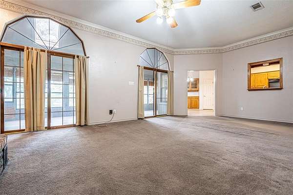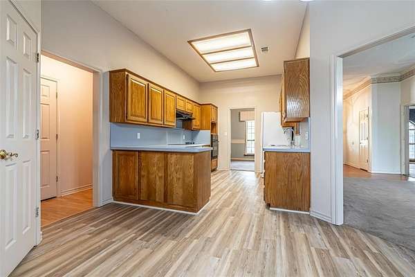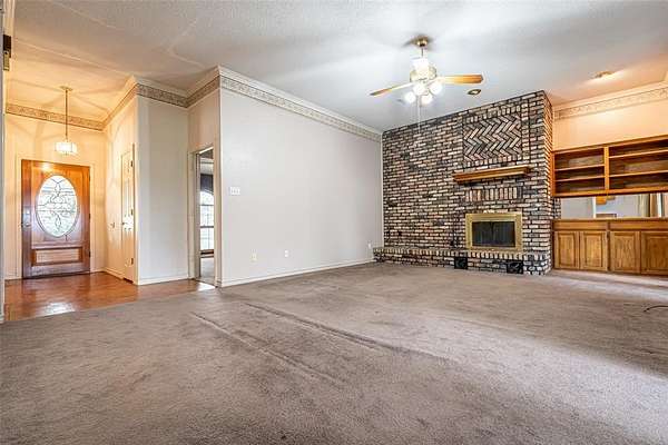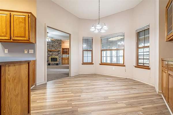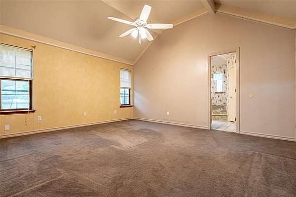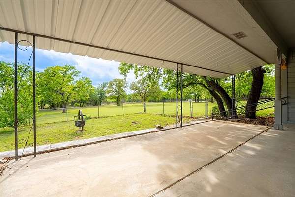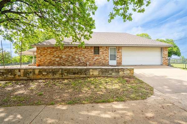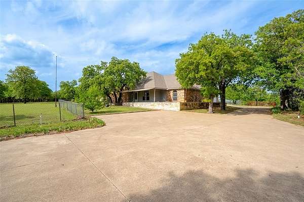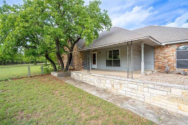 Wide-open Texas living on 3.36 acres! This charming 4-bedroom, 3-bath traditional brick home offers 2,284 sq ft of comfortable, single-story living with the space and freedom rural Hood County is known for. Soaring vaulted ceilings and a dramatic floor-to-ceiling brick wood-burning fireplace with blower make the expansive living room the heart of the home, while built-in cabinetry adds character and function throughout. The primary suite features a private ensuite bath complete with a garden tub, dual vanities, walk-in closet and separate shower. Three additional bedrooms offer generous sizing, and the two other full baths are well-appointed. The kitchen features an electric cooktop and oven, dishwasher, and abundant oak cabinetry. Outside, the possibilities are endless — a large concrete floored workshop, room for RV & boat parking, a large carport, and an attached 2-car garage provide ample room for equipment, animals, and toys. Perimeter and cross-fencing are already in place, making this property livestock-ready. The beautifully cleared, landscaped grounds back to a peaceful greenbelt with mature trees framing the setting. Call today for a tour!
