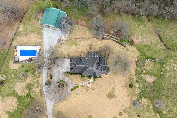 Exceptional 27-acre property featuring a 7,000+ sq ft home with 5 bedrooms, 3 full baths, and 2 half baths. Designed with both comfort and functionality in mind, this property offers a spacious layout with a large kitchen complete with marble tile floors, breakfast nook, and a separate dining area—ideal for everyday living and entertaining. A generously sized pantry provides ample storage and convenience.